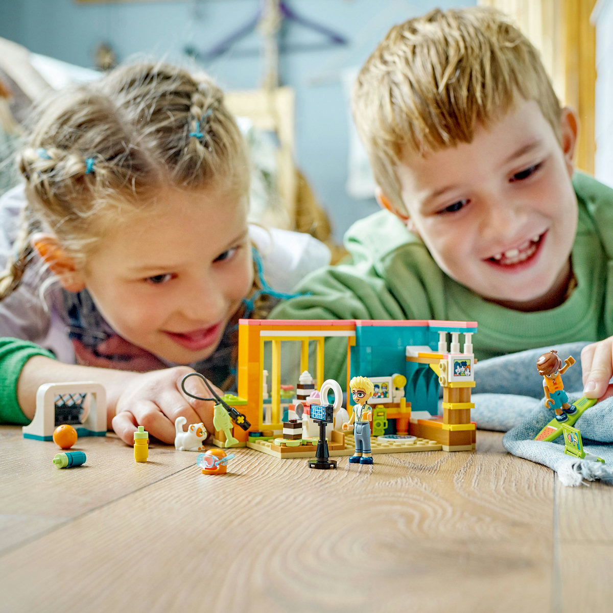 Fie că le place să gătească, să se joace creativ sau ambele, copiii de 6+ ani au multe de descoperit în setul cu jucărie de construcţie LEGO® Friends Camera lui Leo (41754). Leo a creat un studio în dormitorul său pentru a filma conţinut pentru canalul său de gătit. Copiii se vor bucura să se alăture lui Leo şi lui Olly în activităţile lor creative. Olly este expert în producerea de clipuri, aşa că e prietenul perfect care să-l ajute pe Leo. Există multe dotări şi accesorii care să inspire joacape roluri, inclusiv o pisică de jucărie, o carte de bucate şi o cameră de filmat. La finalul filmărilor pentru ziua respectivă, copiii pot deschide uşile balconului pentru ca cei doi prieteni să se bucure de priveliştea către mare din dormitorul cu tematică de plajă.
