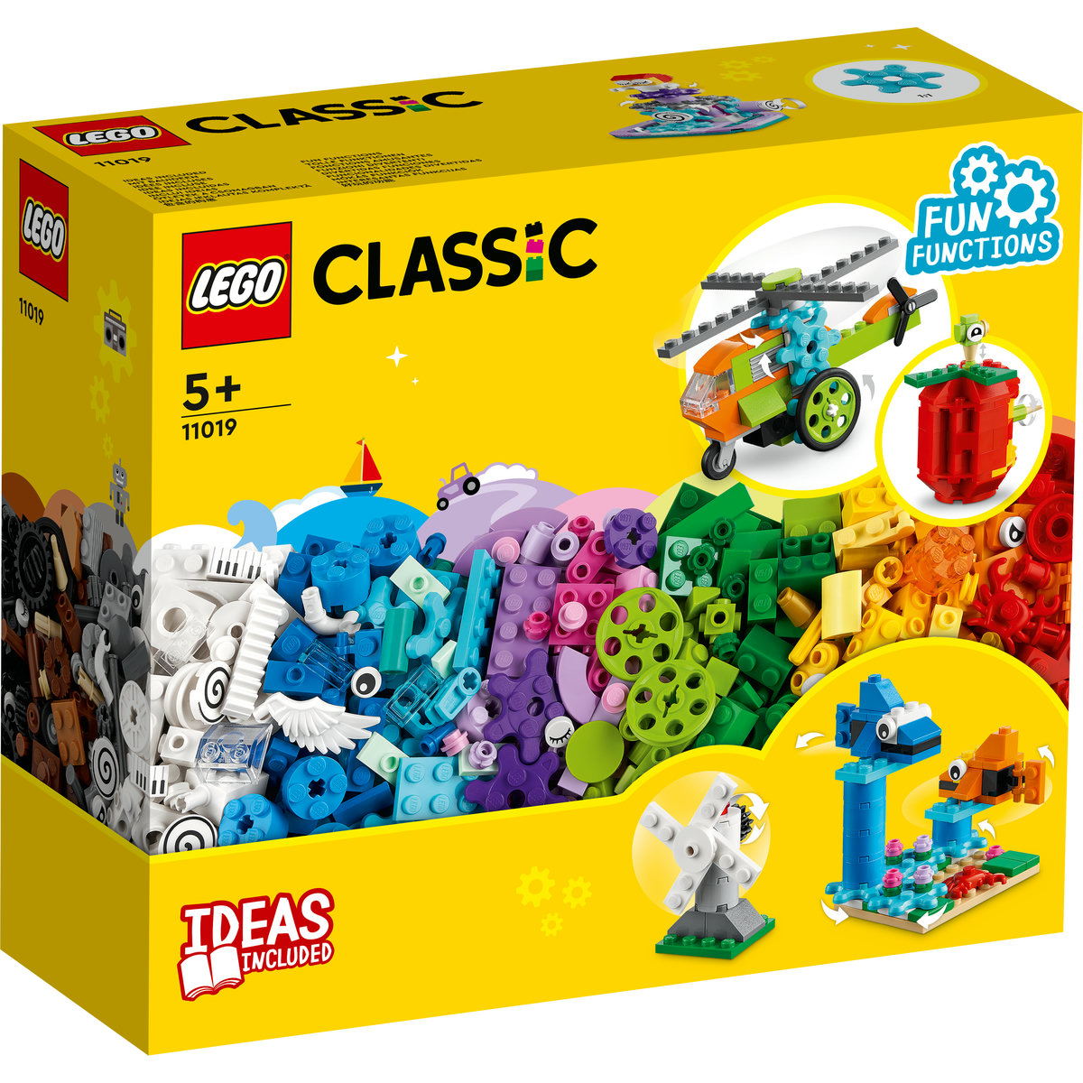 Setul de construcţie LEGO® Classic Cărămizi şi funcţii (11019) include o selecţie colorată de piese LEGO şi instrucţiuni pentru a crea 7 jucării distractive construibile cu funcţii acţionate de roţi dinţate. Copiii pot construi modele cu piese mobile, cum ar fi balerina care face piruete sau elicopterul cu rotoare ce se învârt, înainte de a plonja în pungile cu cărămizi LEGO suplimentare pentru a-şi construi propriile creaţii.