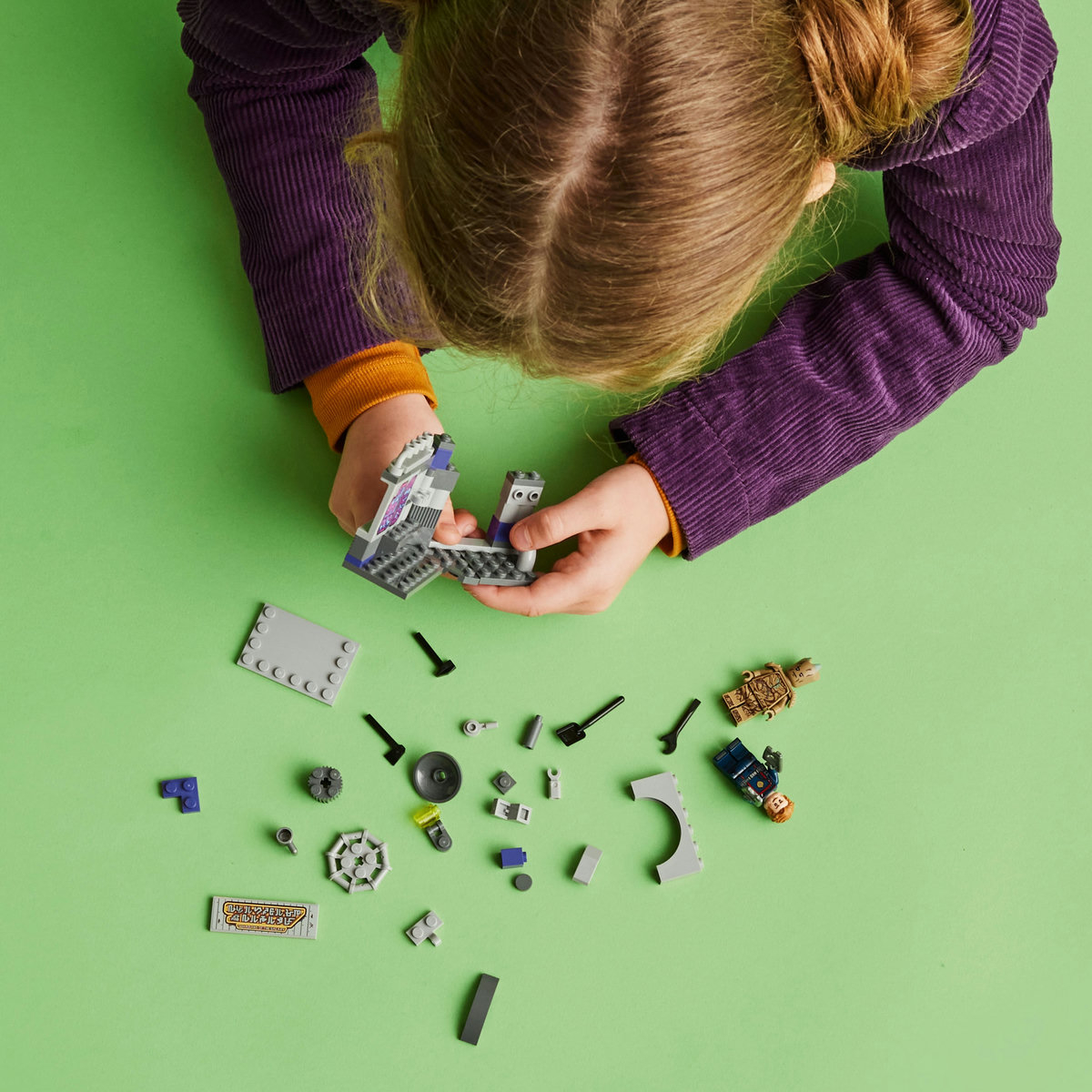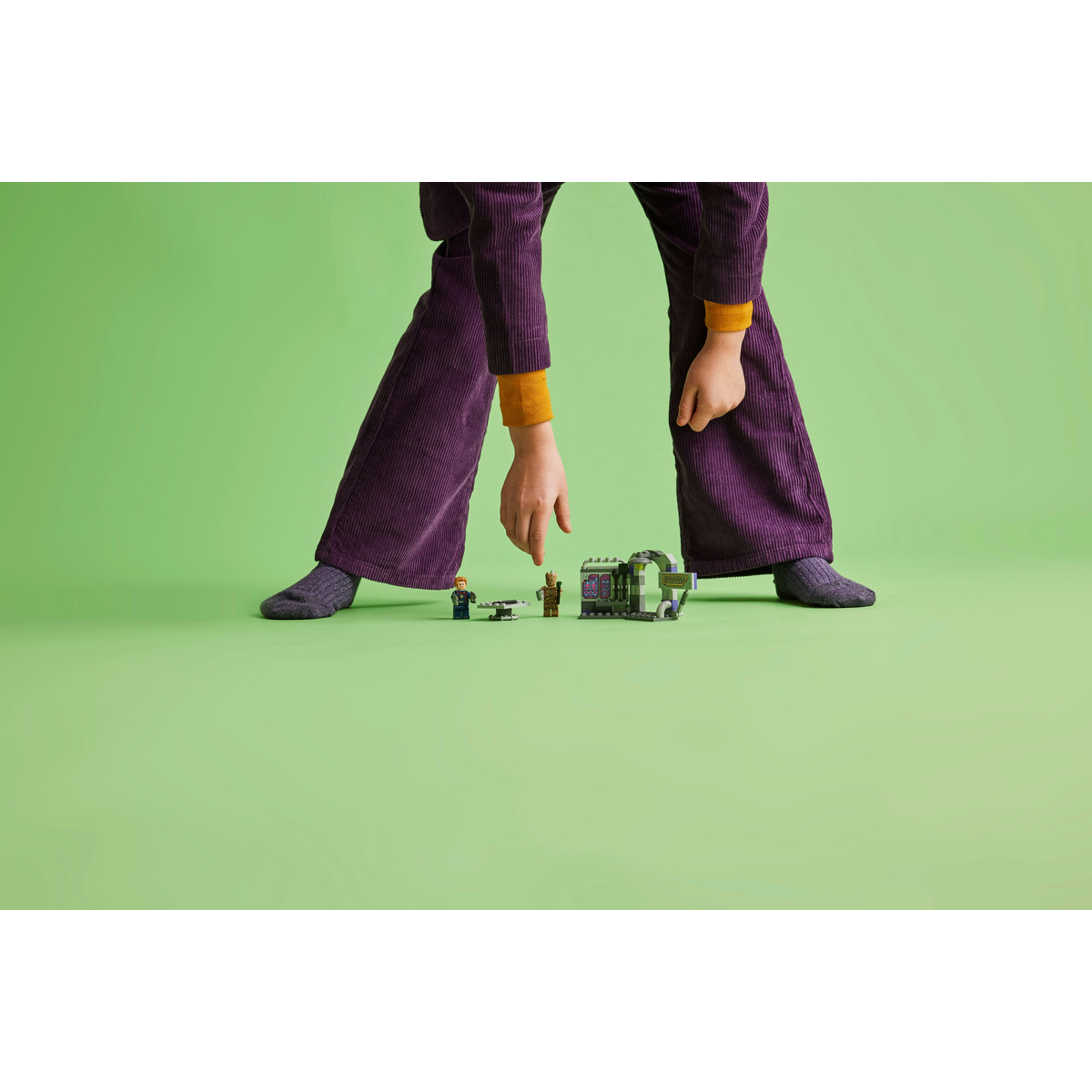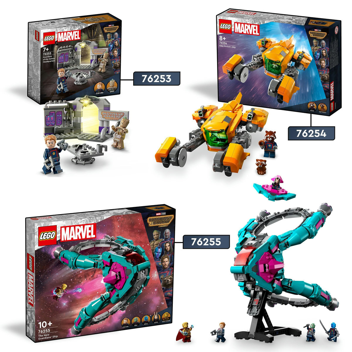 Fanii filmelor Marvel vor recunoaşte această bază a supereroilor din producţia Marvel Studios Gardienii Galaxiei Vol. 3. În interior se află instrumente, sisteme tehnologice şi o masă la care minifigurinele Groot şi Star-Lord plănuiesc următoarea misiune palpitantă. Pentru mai multă distracţie digitală, copiii pot descărca aplicaţia LEGO Builder, unde îi aşteaptă o lume creativă, în care pot apropia şi roti modelele în 3D, salva seturi şi monitoriza propriul progres.