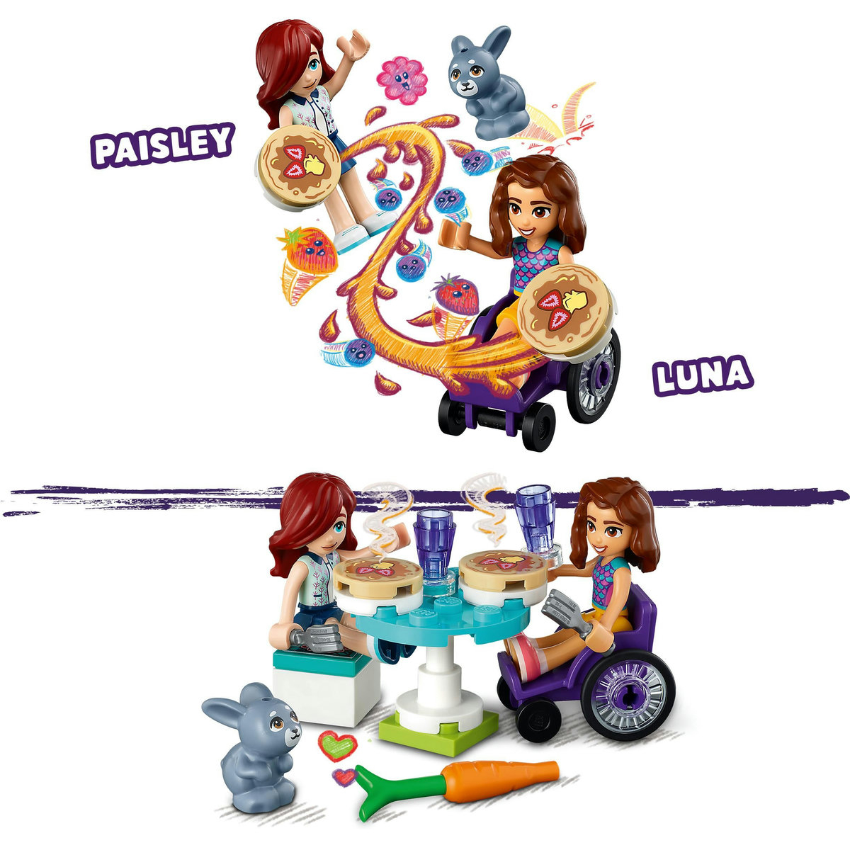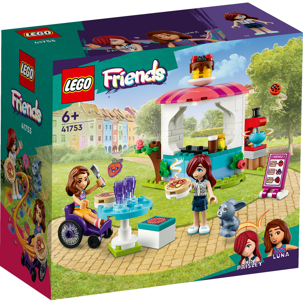 Copiii creativi de 6 ani şi mai mari se pot bucura de joaca pe roluri cu jucăria de construcţie LEGO® Friends Clătitărie (41753). Urmăreşte cum copiii îşi fac prieteni cu personajele Luna şi Paisley. Aventuroasa Luna şi timida Paisley scot mereu ce e mai frumos una de la cealaltă şi, în acelaşi timp, se distrează de minune împreună. Clătităria conţine o plită, toppinguri pentru clătite şi un mixer care se învârte, făcându-i pe copii să-şi închipuie că prepară delicioasele deserturi. Există şi omicuţă casă de marcat, precum şi o masă şi un meniu pentru a imagina poveşti cu clienţi ai magazinului. Copiii vor adora să descopere iepuraşul care se ascunde sub tufă.