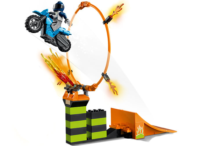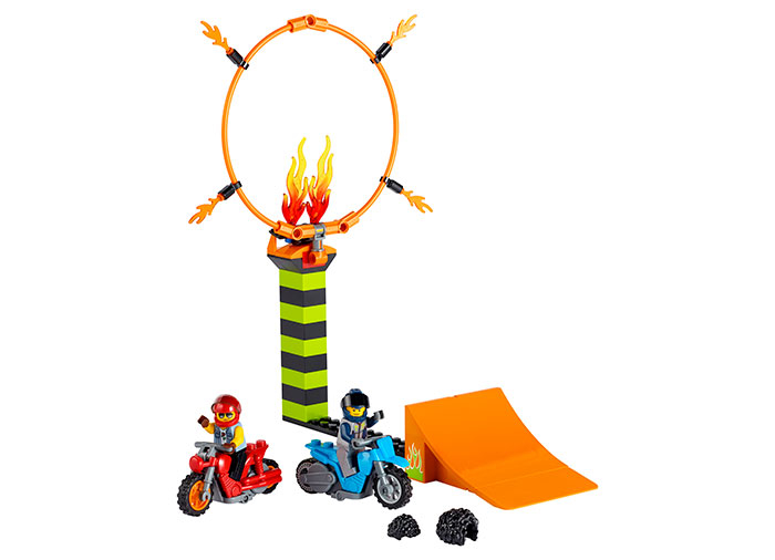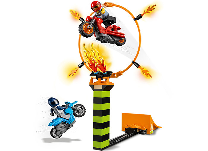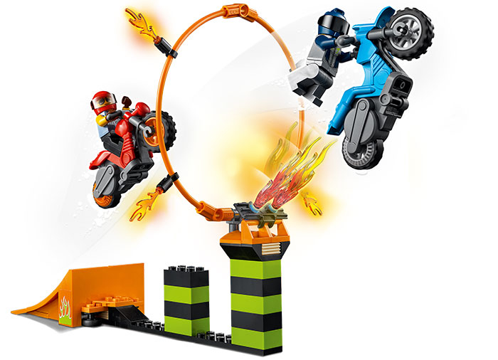 Băieţii şi fetele cărora le plac competiţiile vor adora acest set de joc Concurs de cascadorii LEGO® City (60299), având două motociclete acţionate de volant pentru a efectua acrobaţii uimitoare pe roata din spate şi cascadorii la înălţime. Copiii primesc de asemenea o rampă de lansare reconfigurabilă şi o cursă de cascadorii cu inel de foc. Adaugă doar motociclistul şi minifigurinele Duke DeTain din serialul TV LEGO City, pentru acţiune spectaculoasă cu cascadorii!