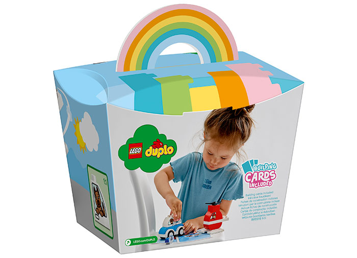 Primul meu Elicopter de pompieri si masina de politie LEGO DUPLO (10957) este o jucarie de dezvoltare adecvata pentru copilasi, construita cu forme colorate si plina de elemente distractive. Jucarie vehicul de salvare pentru copii Copilasii dezvolta abilitati in timp ce se bucura de distractie cu aceasta masina de politie de impins si cu elicopterul de pompieri. Activitatile elementare de constructie imbunatatesc abilitatile motorii fine si invata copilasii despre forme si culori. Povestile captivante de salvare inspira joaca pe roluri si consolideaza abilitatile sociale si emotionale ale copiilor. Cartile de constructie, cu imagini ale modelelor in marime naturala, permit copiilor sa aseze caramizile peste imagine in timp ce construiesc. Jucarii practice de invatare pentru copii. Seturile de joc LEGO DUPLO pun in mainile prescolarilor distractia cu final deschis, exprimarea de sine si invatarea bucurie. Cu jucariile DUPLO, parintii si copilasii pot impartasi etape pretioase de dezvoltare, bucurandu-se de joaca impreuna.
