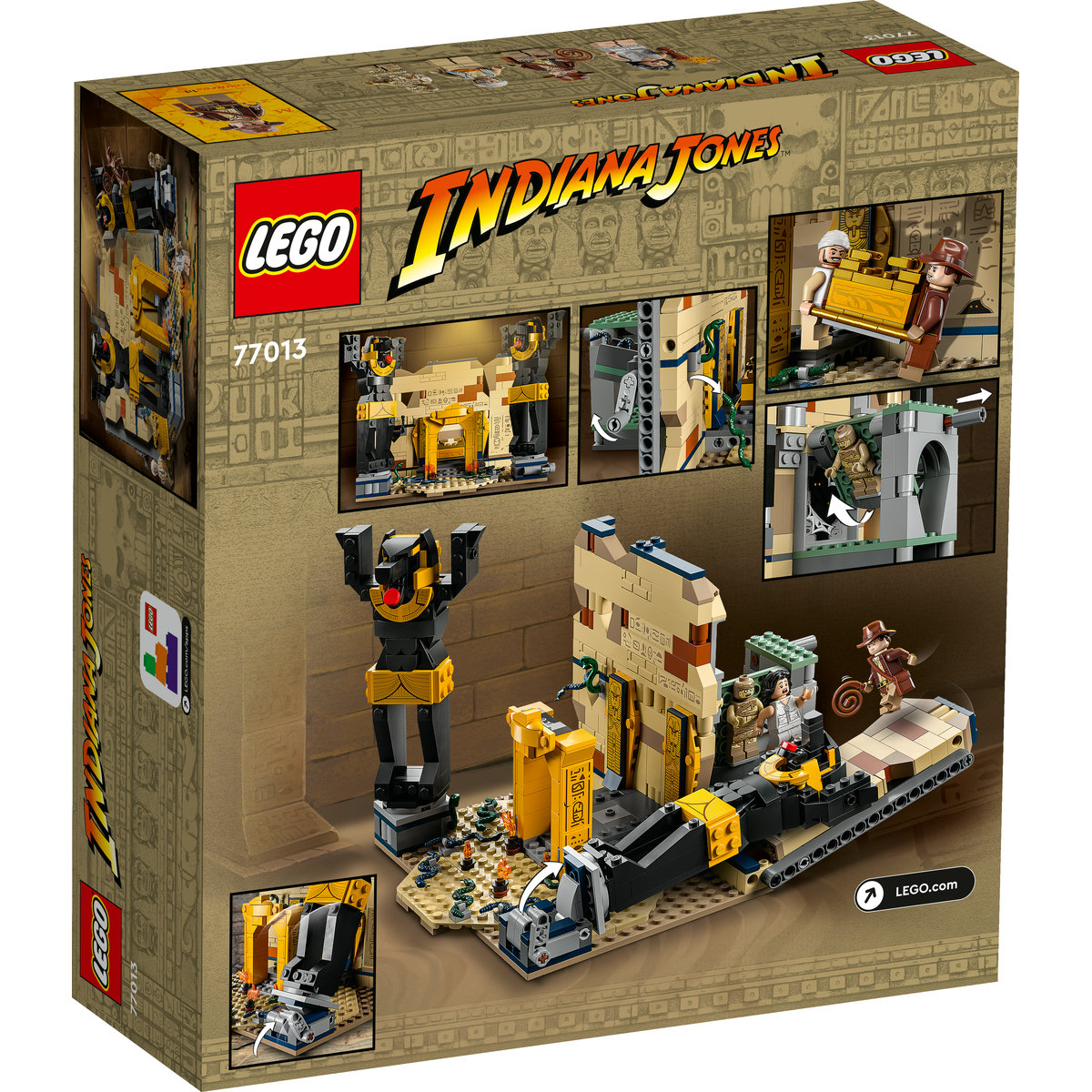 Setul de construcţie include 4 minifigurine: Indiana Jones cu ale sale celebre pălărie şi bici, Marion Ravenwood™, Sallah™ şi o mumie, plus Chivotul Legământului, cu care copiii să interpreteze o scenă faimoasă de evadare din emblematicul film Căutătorii arcei pierdute.