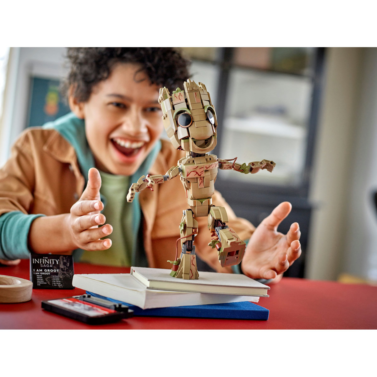 I am Groot! Construieşte simpaticul personaj din universul Marvel împreună cu caseta de piese Awesome Mix Vol. 2. Figurina este articulată şi include o plăcuţă cu informaţii.