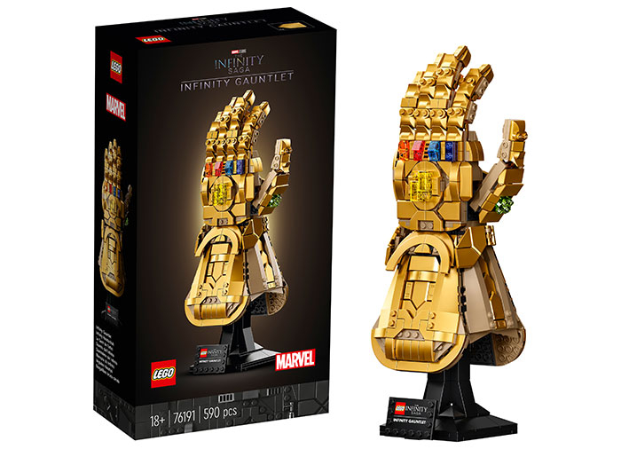 Această recreere din cărămizi LEGO a emblematicei Mănuşi a Infinitului din filmele Răzbunătorii: Sfârşitul jocului şi Răzbunătorii: Războiul Infinitului ale Studiourilor Marvel va atrage cu siguranţă atenţia şi interesul oriunde este expusă. Cu degetele mobile, Pietrele Infinitului în culori vii şi tăbliţa descriptivă ataşată la baza robustă, această mănuşă aurie oferă o provocare de construcţie captivantă şi un model rafinat care îi va captiva pe toţi.