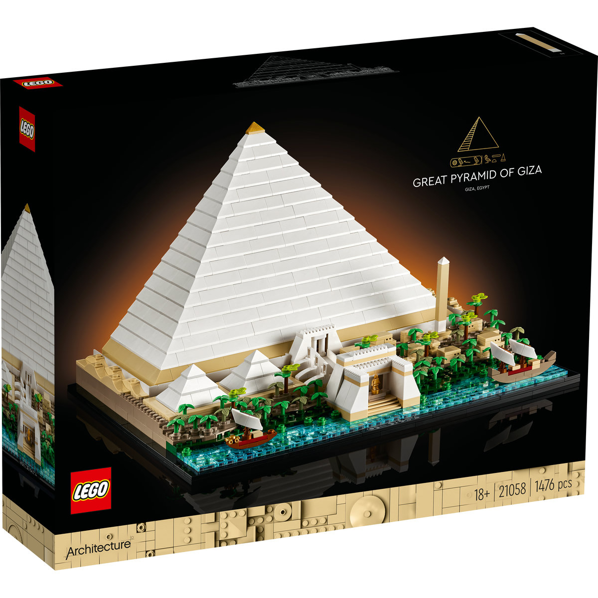 Fa un salt imaginar în timp pâna în secolul 26 î.Hr. si traieste experienta constructiei uneia dintre cele Sapte minuni ale lumii antice, cu acest model LEGO® Architecture Marea Piramida din Giza (21058). Construieste un model Marea piramida în sectiune transversala cu detalii frumoase si dezvaluie tunelurile si camerele principale, precum si sistemul care probabil a fost folosit pentru a muta pietre uriase în timpul constructiei. Vizualizeaza zona din jurul fluviului Nil asa cum se presupune ca ar fi aratat în antichitate, cu 2 piramide mici, 2 temple mortuare, statuile Sfinxului, un obelisc si altele.