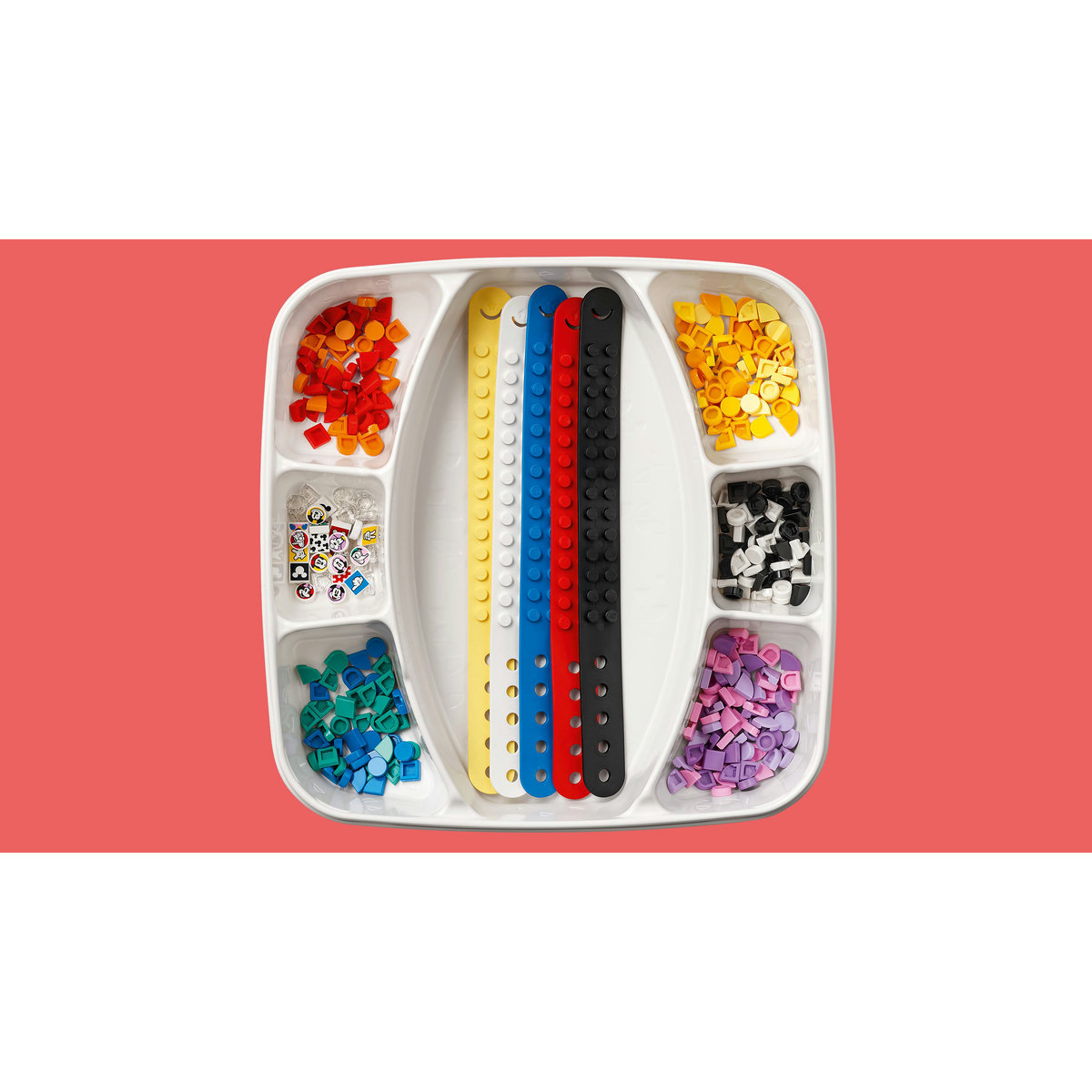 Ai un copil de 6 ani sau mai mare care e pasionat de lucru manual şi adoră personajul Disney Mickey Mouse? Împlineşte-i ambele pasiuni cu kitul LEGO® DOTS +u01c0 Disney Mega pachet de brăţări Mickey şi prietenii (41947)! Setul include 5 brăţări şi o mulţime de plăcuţe colorate, sclipitoare şi decorate, toate adunate în propria cutie de depozitare reutilizabilă.