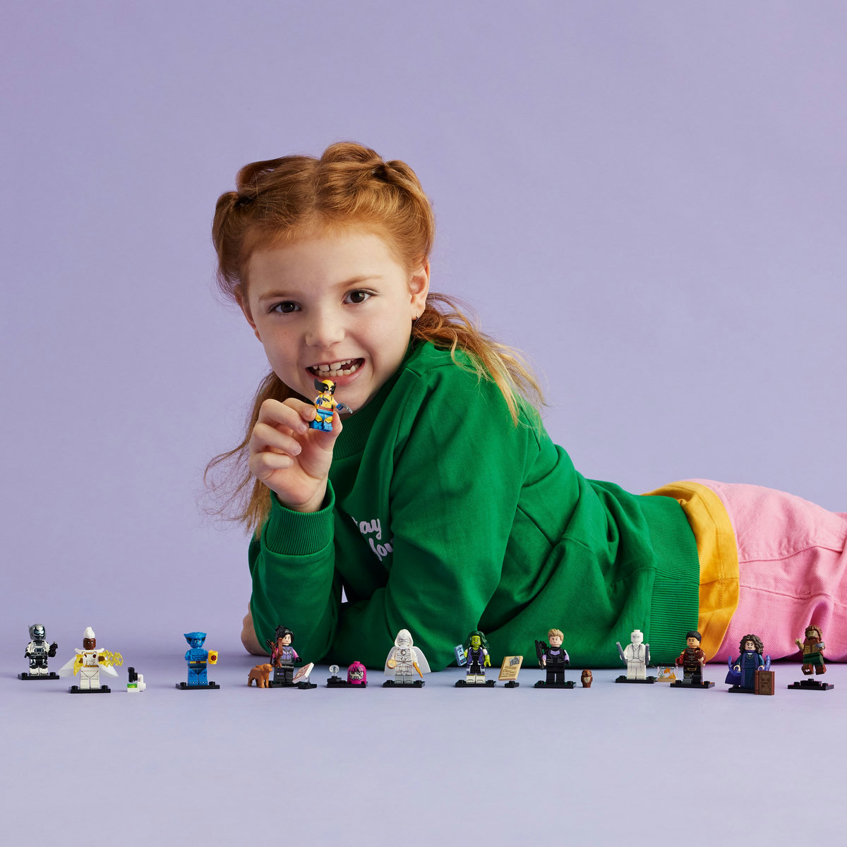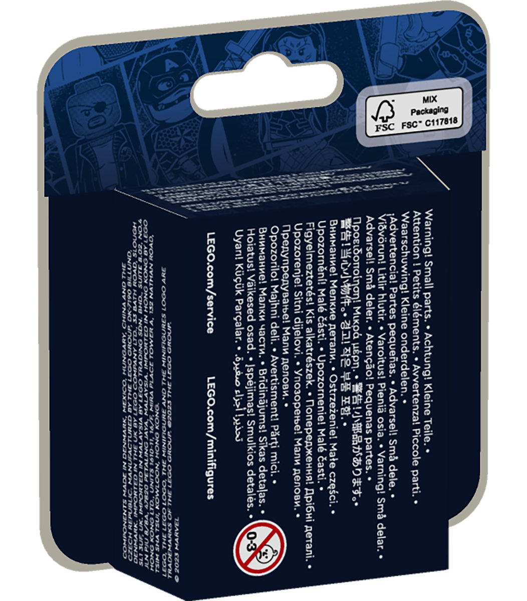 Micii constructori vor fi încântaţi să descopere ce personaj Marvel se află în cutia lor sigilată, sustenabilă. Colecţia include 12 personaje unice: Agatha Harkness, Kate Bishop, Hawkeye, Moon Knight, Mr. Knight, Femeia-Hulk, Werewolf, Goliat, Storm, Beast, Wolverine şi Echo.