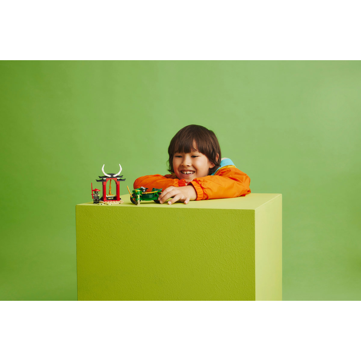 Setul cu motocicletă LEGO NINJAGO a fost special conceput pentru a oferi copiilor de 4+ ani o experienţă minunată de construcţie şi joacă. În interiorul cutiei, fiecare pungă de cărămizi conţine un model şi un personaj de construit, astfel încât copiii pot trece la acţiune numaidecât. În cutie se găseşte şi o cărămidă pentru începători care să ofere copiilor o bază parţial construită şi a le permite să înceapă construcţia.