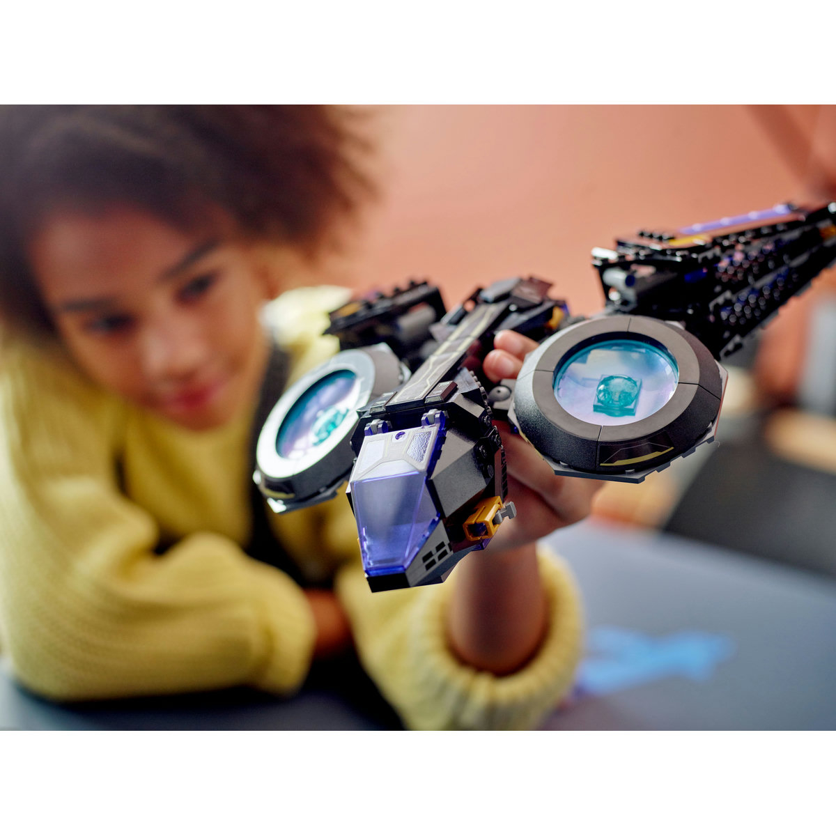LEGO Marvel Pasărea-soare a lui Shuri (76211) arată fantastic, iar copiii vor adora să se joace cu ea. Pune această aeronavă în mâinile unui fan Black Panther de 8+ ani şi priveşte cum imaginaţia sa prinde aripi! Această aeronavă impresionantă este o recreare autentică a Păsării-soare, fantastica navă zburătoare pilotată de Shuri în filmul Black Panther: Wakanda pentru totdeauna, produs de Marvel Studios. Acest echipament versatil şi impunător de super-erou are 2 motoare mari cu articulaţii pe care copiii le pot înclina şi roti într-o varietate de unghiuri. Balamalele permit aripilor să se plieze înainte şi înapoi. În spate se pot păstra armele pumn ale lui Shuri, iar în faţă sunt montate 2 trăgătoare de piroane. Setul include 4 minifigurine: Shuri, Ironheart MK1, Nakia şi Attuma împreună cu armele şi accesoriile lor cool.