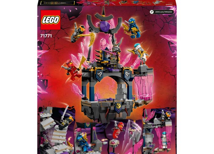 Setul de joc Templul regelui Cristal (71771) le permite copiilor de opt ani şi mai mari să retrăiască scenele favorite din seria TV NINJAGO®: Crystallized. Templul abundă în detalii şi funcţii cool, între care se află tronul Regelui Cristal, o închisoare plutitoare şi mai multe capcane.