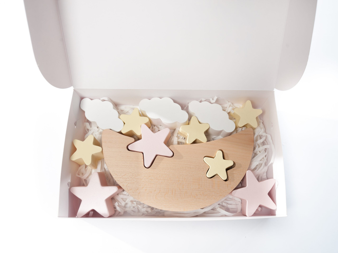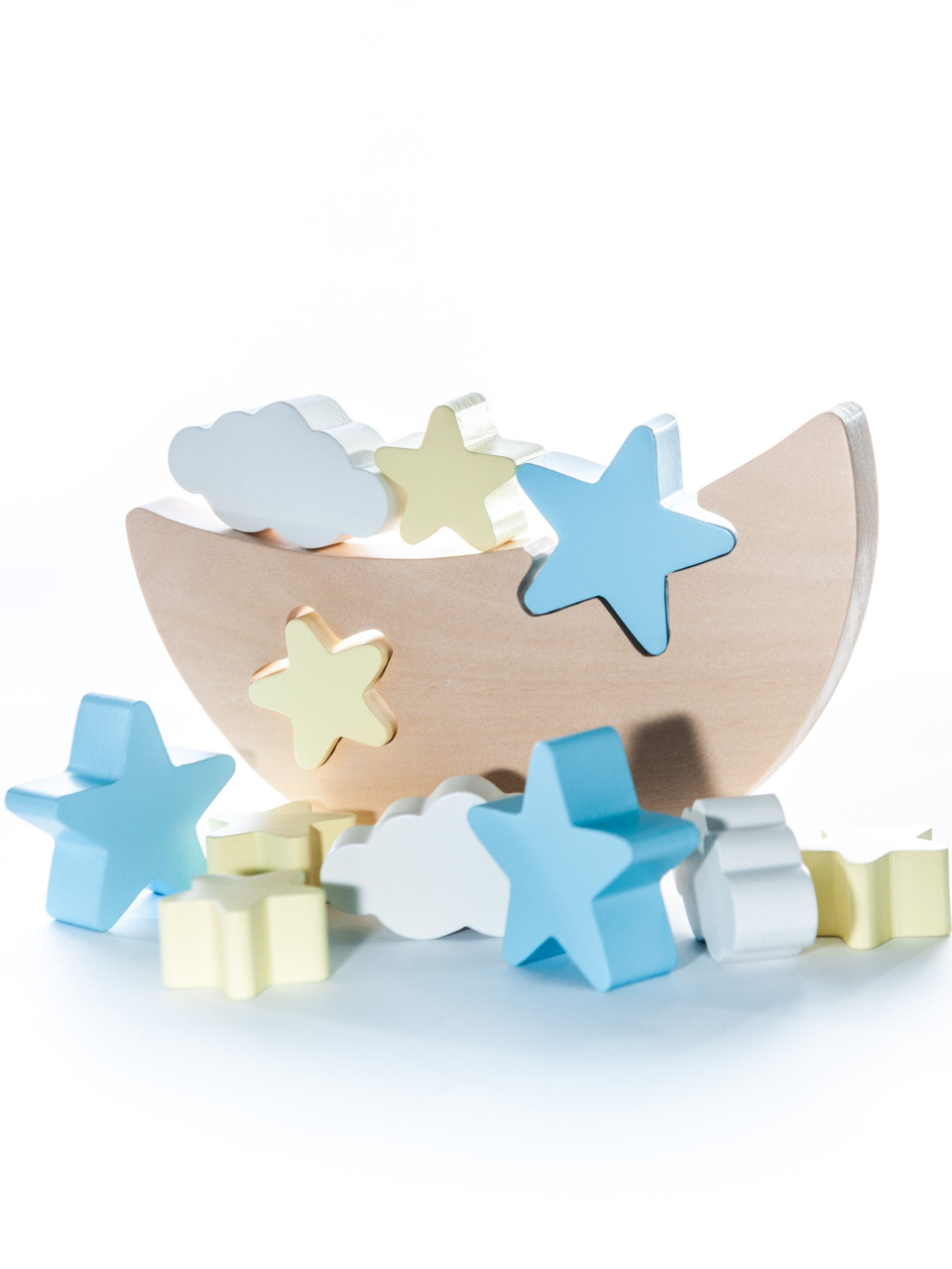 Joc de echilibru handmade Joc de echilibru pentru coordonarea mișcărilor și formarea dexterității. Joc pentru unul sau mai mulți jucători. Clădește steluțele și norii peste luna ușor curbată. Culori: steluțe galbene pal și albastru deschis, luna natur, norișori albi. Varsta recomandata: +2 ani. Confecționat manual, din lemn, cu vopsele non-toxice, conform reglementărilor EN71 & ASTM. AVERTISMENT: Contraindicat copiilor sub 2 ani. Conţine piese mici care pot fi înghițite. A se supraveghea copilul cu atenție în timpul jocului. Producător: Marc toys- Eco factory, Moldova