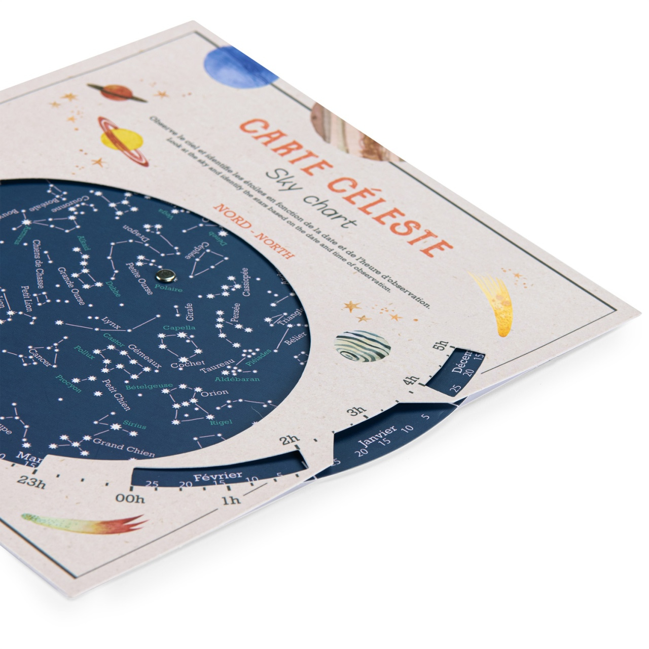 Harta cerului - joc educativ despre stele și constelații Harta Celesta – Descopera Misterele Cerului Nocturn! Invata sa te orientezi pe cer dupa lasarea intunericului cu Harta Celesta ! Un instrument ideal pentru micii astronomi si pasionatii de stele, aceasta harta interactivă te ajută să identifici constelațiile și stelele cu ușurință. 🔹 Ușor de utilizat – ține harta orientata spre nord și începe explorarea. 🔹 Descoperă constelațiile – recunoaște stelele și formațiunile celebre de pe cer. 🔹 Perfecta pentru învățare – un mod distractiv și educativ de a explora universul. 🔹 Ideala pentru observații astronomice – excelenta pentru nopți petrecute sub cerul liber. Cu aceasta harta, cerul instelat va avea mai puține secrete pentru tine! 🌌✨ Un instrument educativ și captivant, ideal pentru a stimula curiozitatea și dorința de a descoperi minunile cerului. Dimensiune 20 x 20 cm Vârsta recomandată: +3 ani. Atenție: nu se spală! Confecționată din carton. Conform reglementărilor EN71&ASTM. Producător: Moulin Roty , Franța