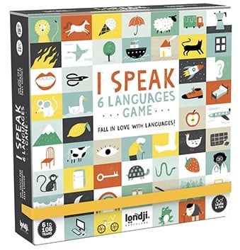 Joc educativ Învăț 6 limbi străine Un joc util tuturor celor care doresc să învețe limbi străine. Află cum casa are atât de multe forme, cum poți urca un munte în franceză, descrie un curcubeu în germană, bea apă în spaniolă sau catalană, și evident cum pregătești paste în italiană. Conține 100 de piese din carton pe care e ilustrată o imagine sugestivă și traducerea cuvântului respectiv în 6 limbi, fiind astfel instrumente perfecte pentru a învăța cele mai uzuale noțiuni. Vârsta recomandată: +6 ani. Confecționat din Hârtie FSC și carton reciclat. Conform reglementarilor EN71&ASTM. AVERTISMENT: Contraindicat copiilor sub 3 ani. Se recomandă supravegherea copilului de către un adult în timpul jocului. Producător: Londji, Spania.