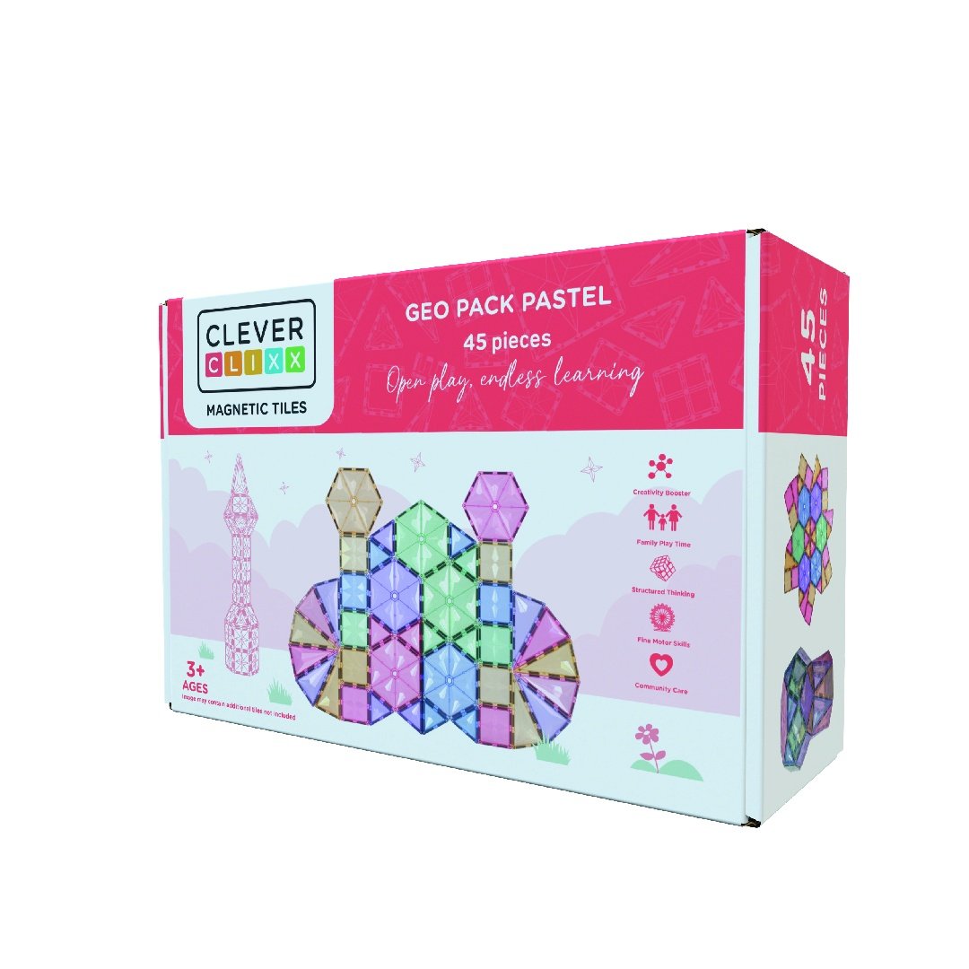 Jocuri magnetice de construit Pastel 45 piese, Cleverclixx