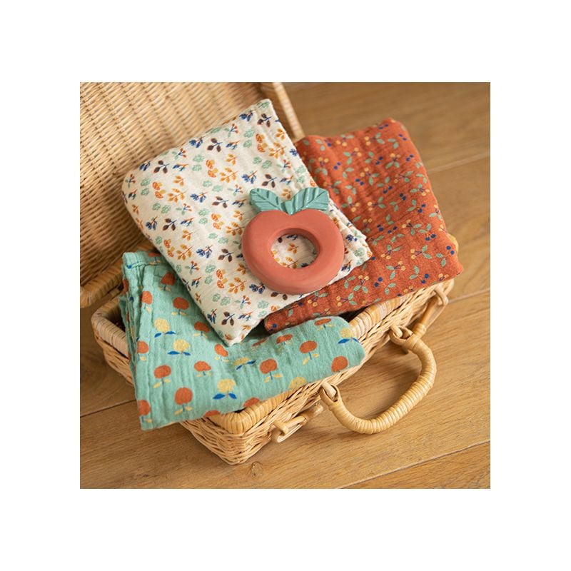 Jucarie gingivala Mar Inel de dentitie din cauciuc 100% natural, în formă de măr dulce, ideal pentru calmarea gingiilor dureroase ale bebelusului! Este echipat cu suprafețe striate pentru formarea dinților și proeminențe rotunjite pentru calmarea gingiilor. Este ambalat într-o cutie deschisă, imprimată cu informatiile esentiale explicate cu cea mai mare simplitate! Moale și masticabil pentru a ușura disconfortul de dentiție Poate fi folosit și ca jucărie sau jucărie de baie Cauciucul natural este un material sigur și sănătos pentru bebeluș. Arborele de cauciuc este cultivat fără niciun tratament chimic, apoi recoltat și prelucrat manual într-un mod responsabil. Pictat manual cu pigmenți naturali Fără orificii pentru a preveni acumularea de murdărie și bacterii în interior. Spălați manual cu apă și săpun. Nu sterilizați. Nu conține PVC, BPA, ftalat și nitrozamină Diametru 8 cm. Vârsta recomandată: + 0 luni. Confecţionat din cauciuc natural (Hevea). Conform reglementarilor EN71&ASTM. A se folosi sub directa supraveghere a unei persoane adulte. Înlăturaţi ambalajul și eticheta înainte de a oferi jucăria copilului. Producător: Moulin Roty