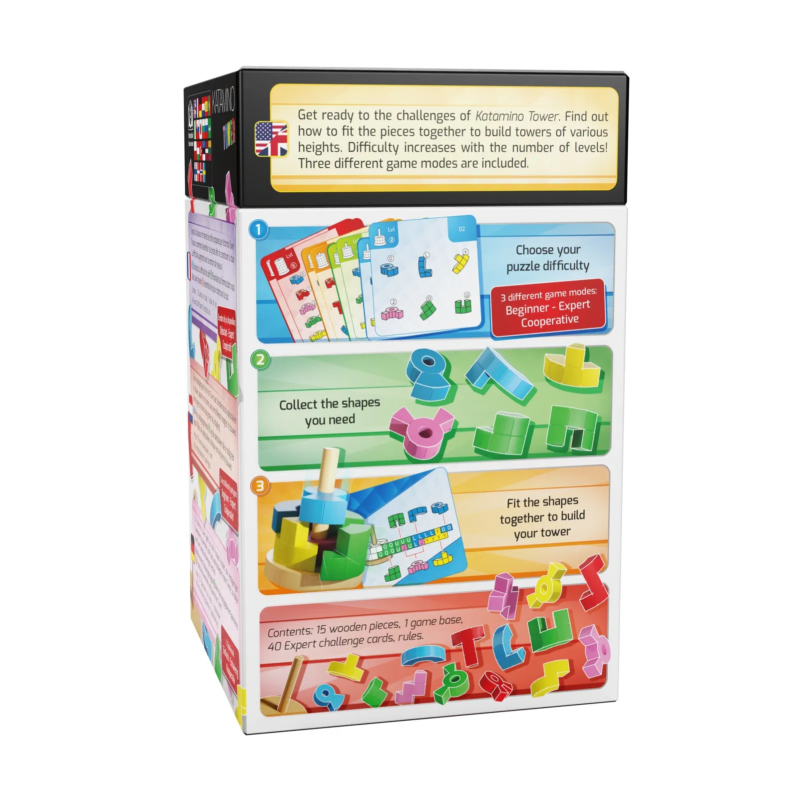 Katamino Tower MULTI este un joc de logica spatiala ingenios, perfect pentru 1 sau 2 jucatori, in care trebuie sa construiesti un turn stabil folosind piese din lemn in forme si culori diferite. Provocator, tactil si surprinzator, jocul dezvolta gandirea strategica si atentia la detalii, oferind o experienta educativa memorabila.