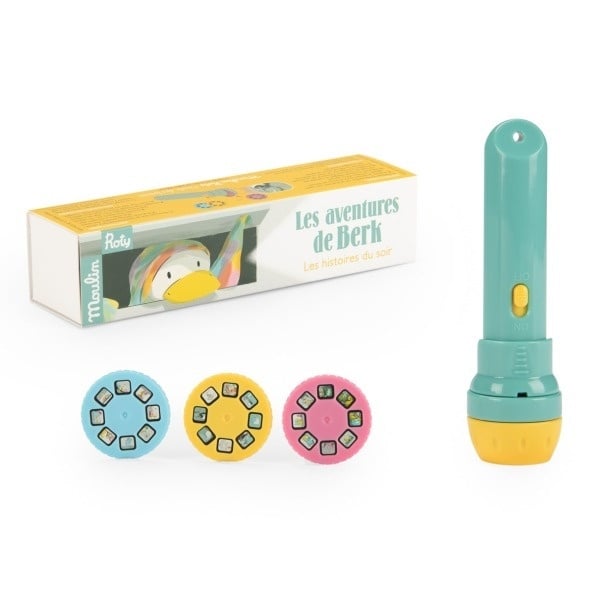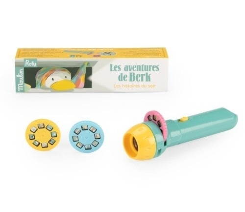 Lanterna magica Aventurile ratoiului Berk Perfectă pentru a stimula imaginația copiilor, această lanternă compactă proiectează imagini fermecătoare pe pereți sau tavan, creând un moment special înainte de somn. 🔹 3 discuri cu povești ilustrate – fiecare disc conține imagini care îi vor inspira pe cei mici să inventeze propriile povești. 🔹 Ușor de utilizat – doar rotește discul și descoperă fiecare scenă proiectată. 🔹 Dimensiune compactă – ideală pentru a fi luată în călătorii sau pentru seri de poveste acasă. 🔹 Experiență interactivă – încurajează creativitatea și dezvoltarea vocabularului. O idee minunată de cadou pentru micii visători! 🌙✨ Lampa proiectează imagini pe o distanță de până la 90 cm. Funcționează cu 3 baterii incluse (1,5 V AG13/LR44). Vârsta recomandată: 4 - 7 ani. Material: plastic ABS. Se curăță cu o cârpă moale și umedă. Producător Moulin Roty, Franța.