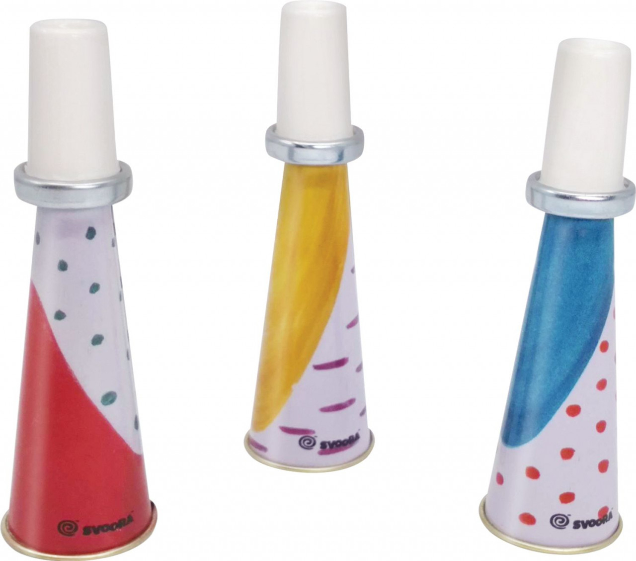 Mini-trompeta metalica Ia mini-trompeta și lasă spectacolul muzical să înceapă! O varietate de modele de mini-trompete metalice pentru explorări muzicale distractive, ca să ai de unde să alegi! Vârsta recomandată: + 4 ani. Fabricat din metal și plastic. Conform standardelor EN71, ASTM. AVERTISMENT! Contraindicat copiilor sub 3 ani. A se folosi sub directa supraveghere a unei persoane adulte. Producător: Svoora, Grecia