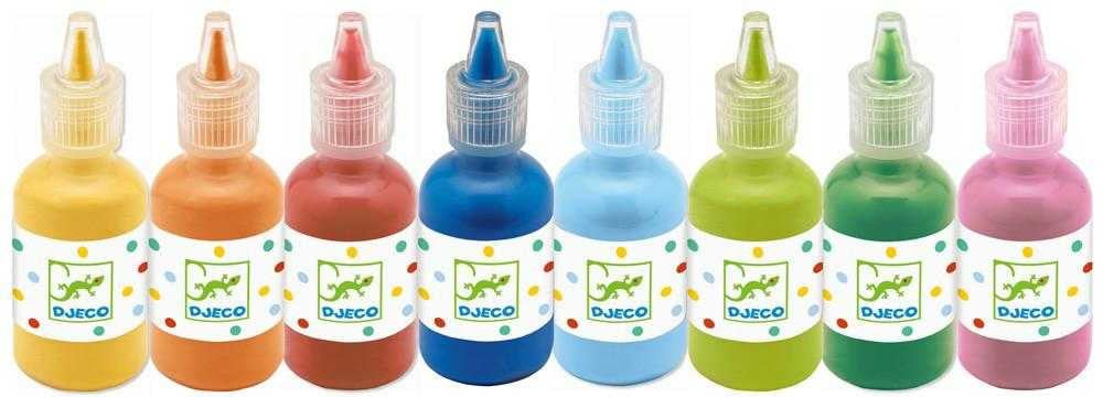 Set 8 Culori guase Djeco 8 culori tempera, în nuanţele cele mai folosite. Conţine: 8 sticle de vopsea, paletar şi pensulă. Vârsta recomandată: +3 ani. Confecționate din materiale și culori non-toxice conform ASTM D-4236. AVERTISMENT! Contraindicat copiilor sub 3 ani. Se recomandă supravegherea copilului de către un adult în timpul jocului. Producător: Djeco, Franța