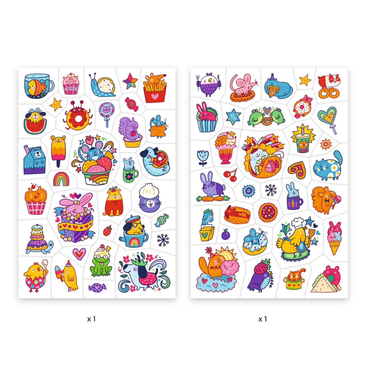 Tatuaje delicioase Tatuaje non alergice, special create pentru cei mici. Două foi cu tatuaje temporare. Tatuajele sunt pre-tăiate pentru a fi ușor de utilizat și transferat, folosind puțină apă. Testate dermatologic. Se aplică tatuajul pe pielea uscată, se umezește pelicula și se apasă câteva secunde, fără a mișca, pentru o fixare corectă. Se îndepărtează cu apă și săpun sau cu un demachiant delicat. Vârsta recomandată: +3 ani. Confecționate din hârtie certificată FSC®. AVERTISMENT: Contraindicat copiilor sub 3 ani. A se utiliza sub directa supraveghere a unei persoane adulte. Producator: Djeco, Franța