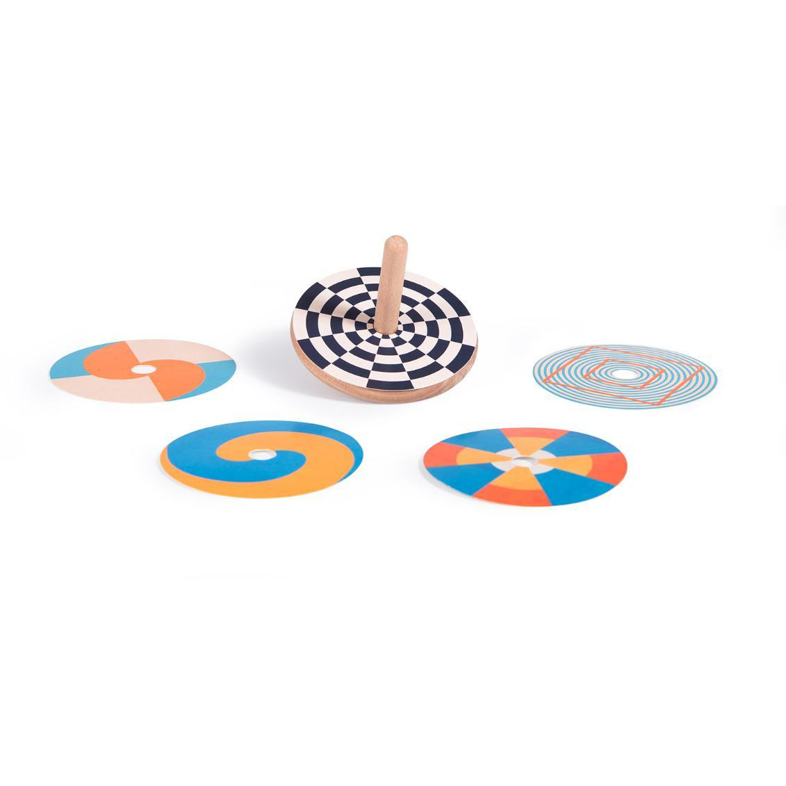 Titirez cu modele geometrice Găsește modelul preferat din cele 5 ilustrații care se pot schimba între ele și pune pe titirezul din lemn, sau ia o foaie goală și creează propriul tipar. Mișcarea ne arată iar și iar cât de diferite pot să fie lucrurile Setul conţine un titirez din lemn natur, 5 foi laminate cu modele geometrice diferite. Vârsta recomandată: + 3 ani. Confecţionat din lemn si carton non-toxic, conform reglementărilor EN71&ASTM. AVERTISMENT! Contraindicat copiilor sub 3 ani, conţine piese mici, pericol de înghițire . A se folosi sub directa supraveghere a unei persoane adulte. Producător: Moulin Roty, Franța