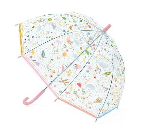 Umbrela zborul usor O umbrelă ilustrată în culori delicate. Designul său transparent îi permite copilului să vadă pe unde merge, iar deschiderea manuală prevăzută cu un sistem de protecție înseamnă că poate fi deschisă și închisă fără să ciupească degetele. Un accesoriu colorat, ideal pentru a însenina ieșirile pe ploaie! Structura din fibra de sticla: flexibila si rezistenta, cu finisaj textil, închidere cu capsă. Mecanism manual de deschidere cu sistem de protecție pentru a preveni ciupirea degetelor. Dimensiune conceputa pentru copii. Se potrivește cu umbrela pentru adulți, „Flori colorate” (DD04720). Include: umbrelă de plastic cu finisaj textil, 8 nervuri din fibră de sticlă, cadru din fibră de sticlă cu deschidere manuală prevăzută cu sistem de protecție și mâner din plastic mat. Dimensiuni la deschidere: 68 x 70 cm (diametru). Articol decorativ. Nu este jucărie! Producător: Djeco, Franța