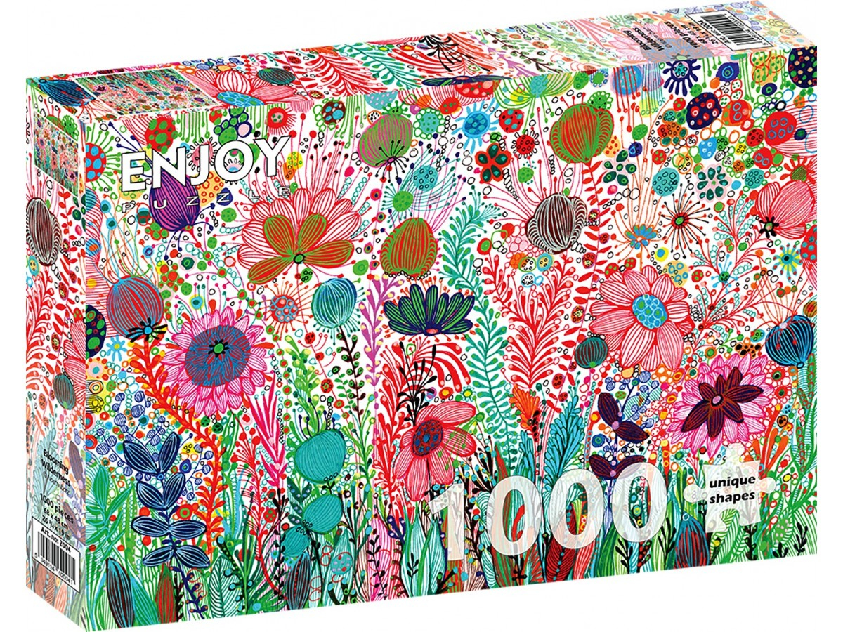 Descoperă frumusețea naturii în toată splendoarea ei cu Puzzle 1000 piese Enjoy – Blooming Wilderness! Această ilustrație digitală vibrantă te poartă într-o lume plină de flori multicolore, detalii fine și forme organice care emană viață și energie. Fiecare floare este unică, cu petale și modele decorative care creează o compoziție densă, spectaculoasă și captivantă. Un puzzle perfect pentru iubitorii de artă, culoare și relaxare creativă.