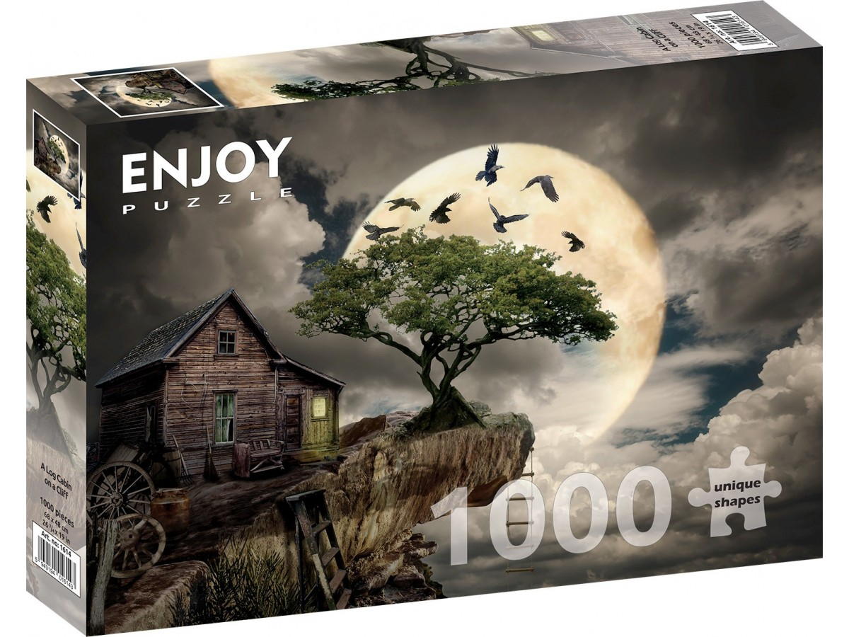 Evadare în vârf de stâncă 🏞️✨ Puzzle 1000 piese Enjoy – A Log Cabin on a Cliff te poartă într-un peisaj montan spectaculos, plin de liniște și culoare.