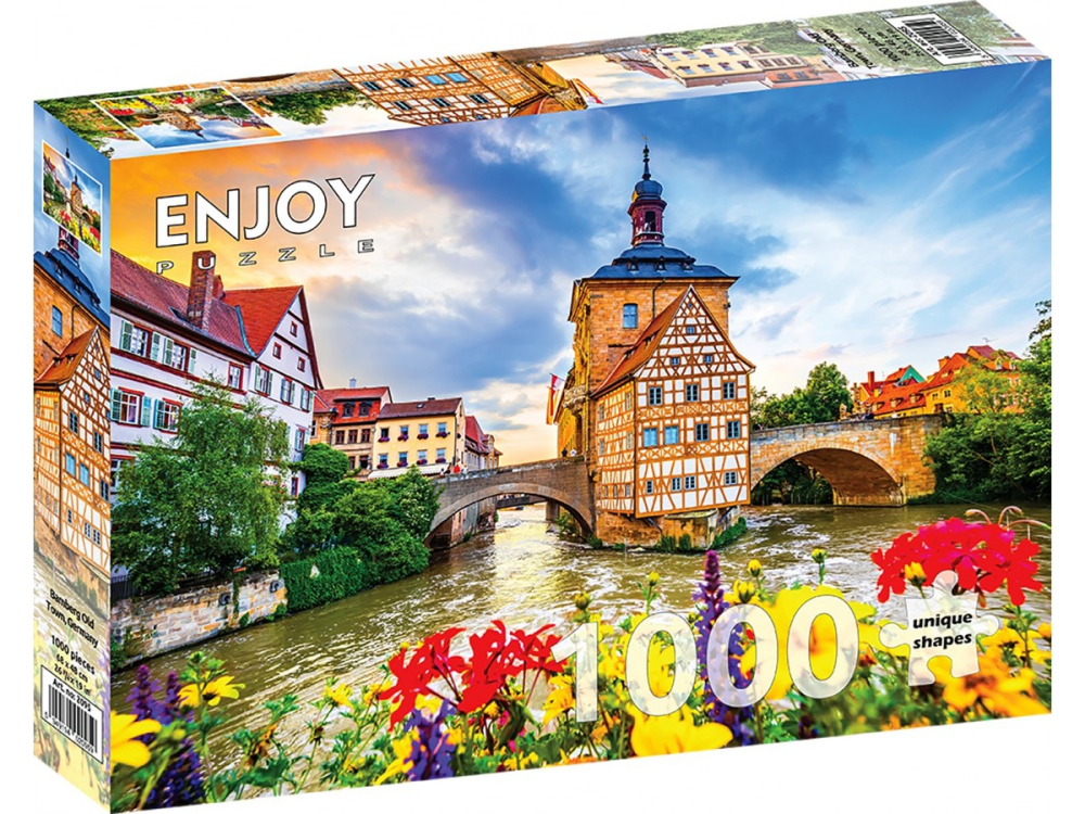 Puzzle 1000 piese Enjoy – Bamberg Old Town reda Podul Vechi și primăria veche din Germania 🏰🌸🧩