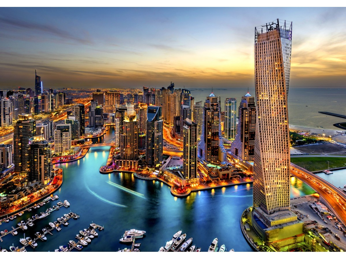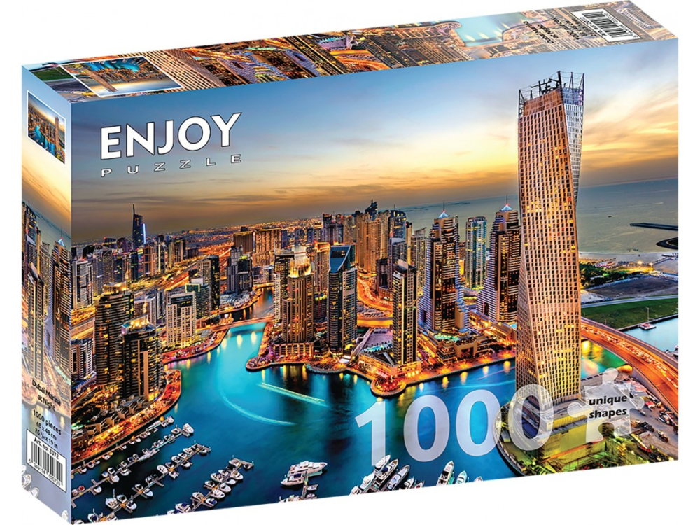 Puzzle 1000 piese Enjoy – Dubai Marina at Night reda luxul si energia unui oras modern luminat spectaculos noaptea 🌃⛵🧩