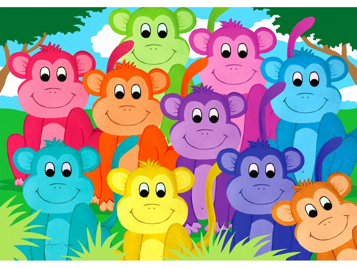 Puzzle 1000 piese Enjoy – Rainbow Monkeys aduce buna dispozitie printr-o ilustratie vesela cu maimute colorate si expresive 🐒🌈🧩