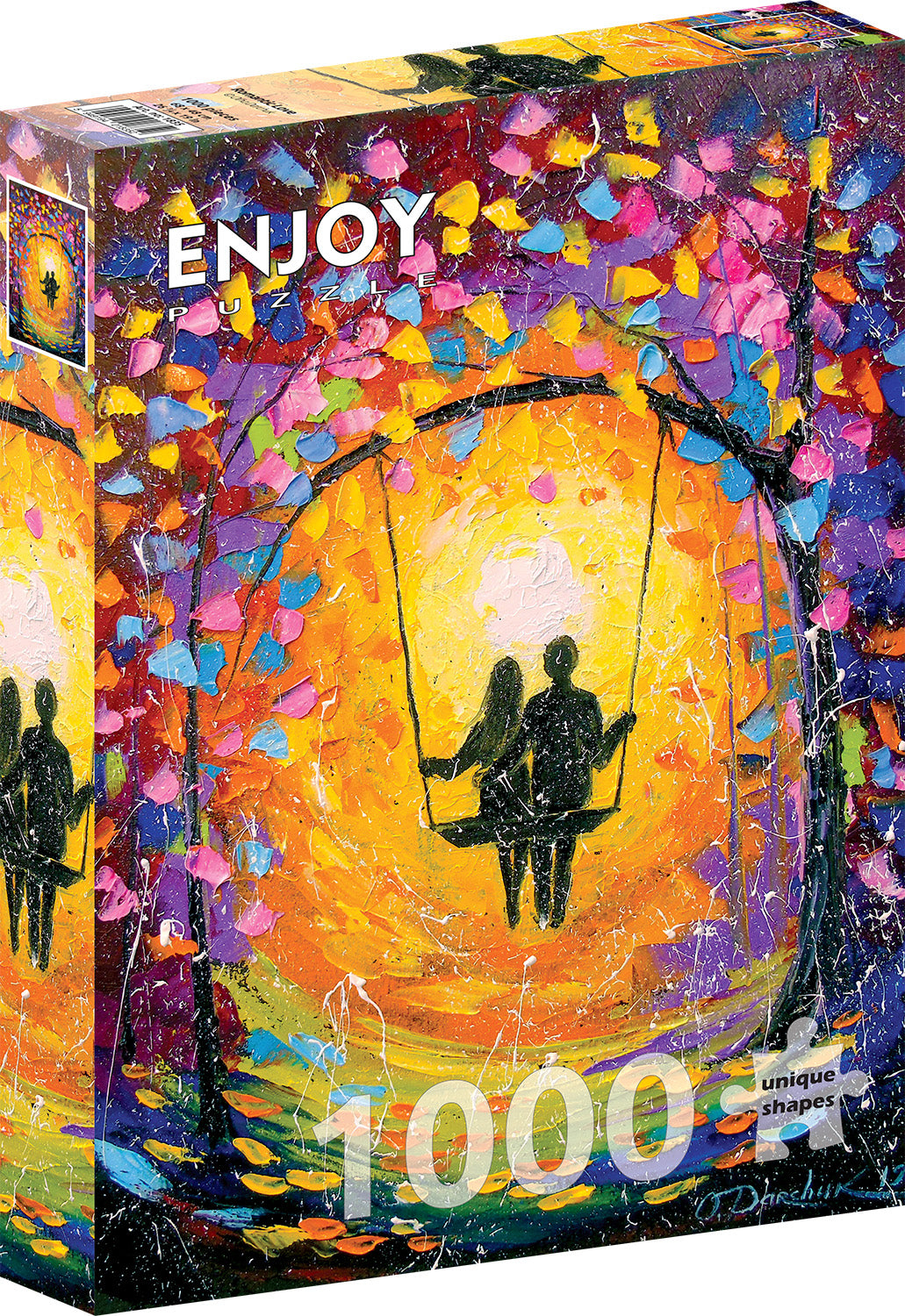 Iubirea capătă culoare 💞 Puzzle 1000 piese Enjoy – Romantic Love surprinde o scenă urbană plină de tandrețe, lumină și emoție artistică.