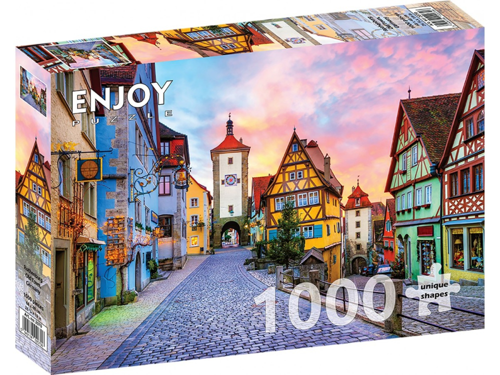Puzzle 1000 piese Enjoy – Rothenburg Old Town, Germany surprinde frumusetea unui oras medieval german la apus 🏰🌇🧩