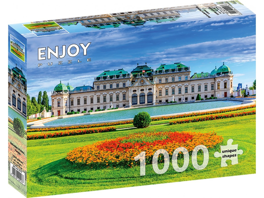 Descoperă eleganța arhitecturală a Vienei cu Puzzle 1000 piese Enjoy – Belvedere Palace Vienna, o imagine panoramică ce surprinde farmecul unuia dintre cele mai impresionante palate baroce din Europa! Fotografia detaliată redă fațada simetrică a Palatului Belvedere, decorată cu ornamente rafinate și acoperișuri verzi strălucitoare, în contrast perfect cu grădinile pline de flori colorate. Cerul senin și lumina naturală completează armonia vizuală, oferind o experiență relaxantă și plină de rafinament.