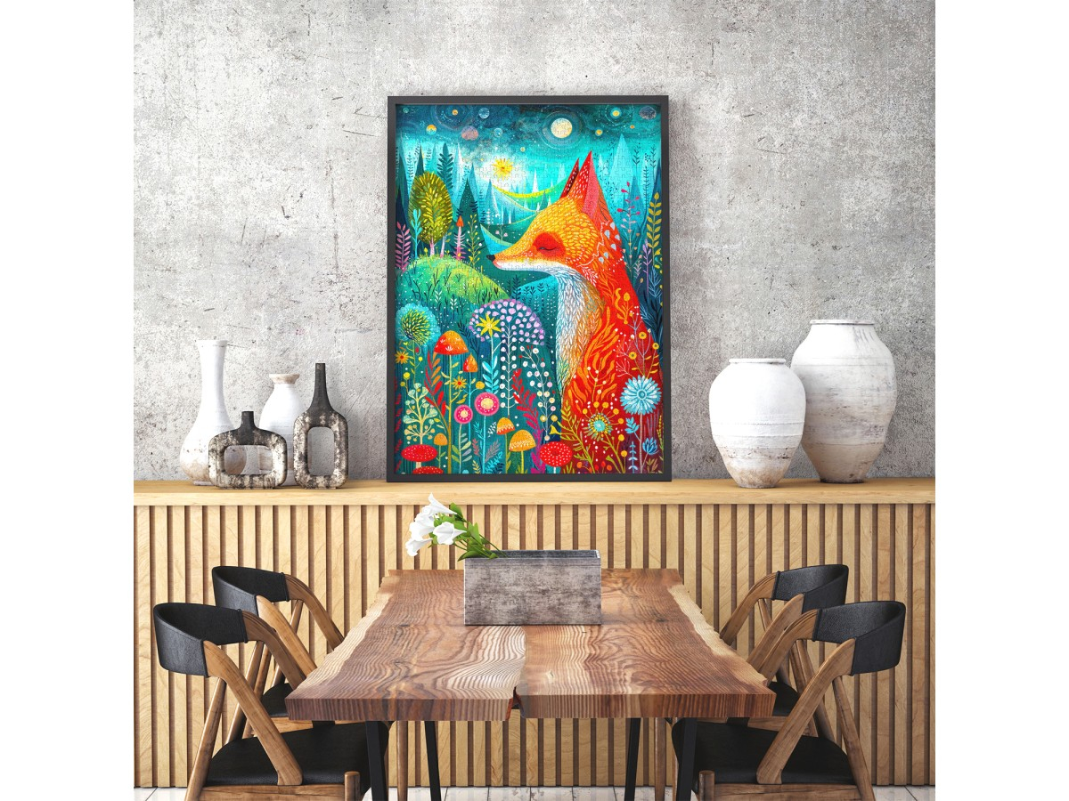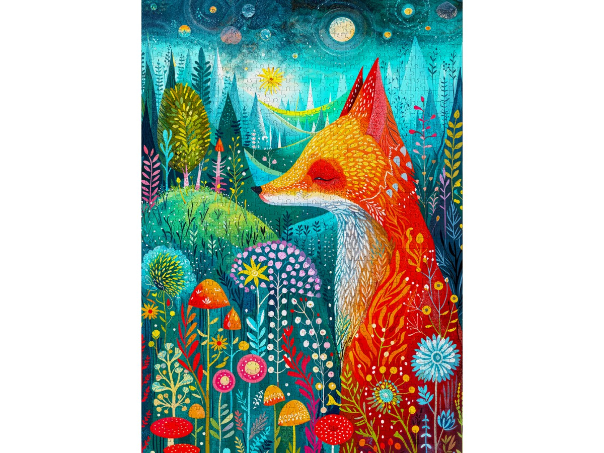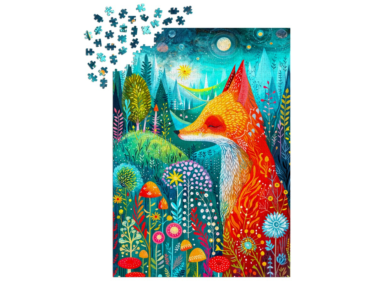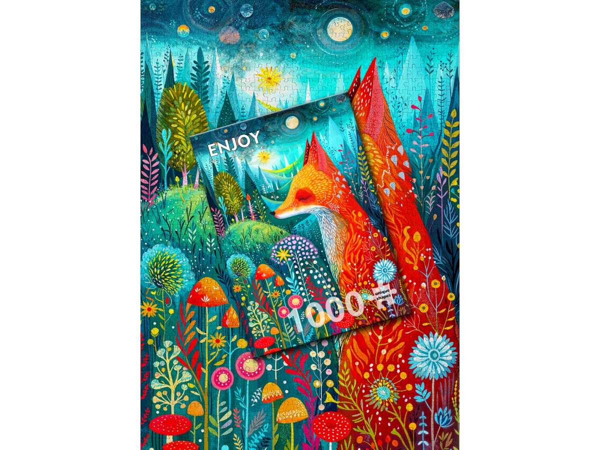 Descopera magia naturii si energia culorilor cu puzzle-ul Enjoy – Blissful Awakening, o ilustratie digitala plina de viata care surprinde o vulpe eleganta intr-un peisaj de padure luxurianta. Tonurile vibrante de portocaliu si rosu ale vulpii contrasteaza perfect cu nuantele de albastru, verde si turcoaz ale vegetatiei, creand o compozitie armonioasa si plina de caldura. In jurul acesteia se regasesc flori, ciuperci si frunze ilustrate cu detalii fine, evocand o dimineata senina intr-o lume de poveste. Imaginea transmite echilibru, liniste si o bucurie simpla, perfecta pentru momentele tale de relaxare creativa.