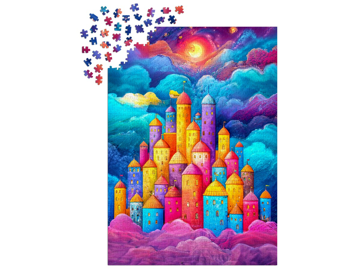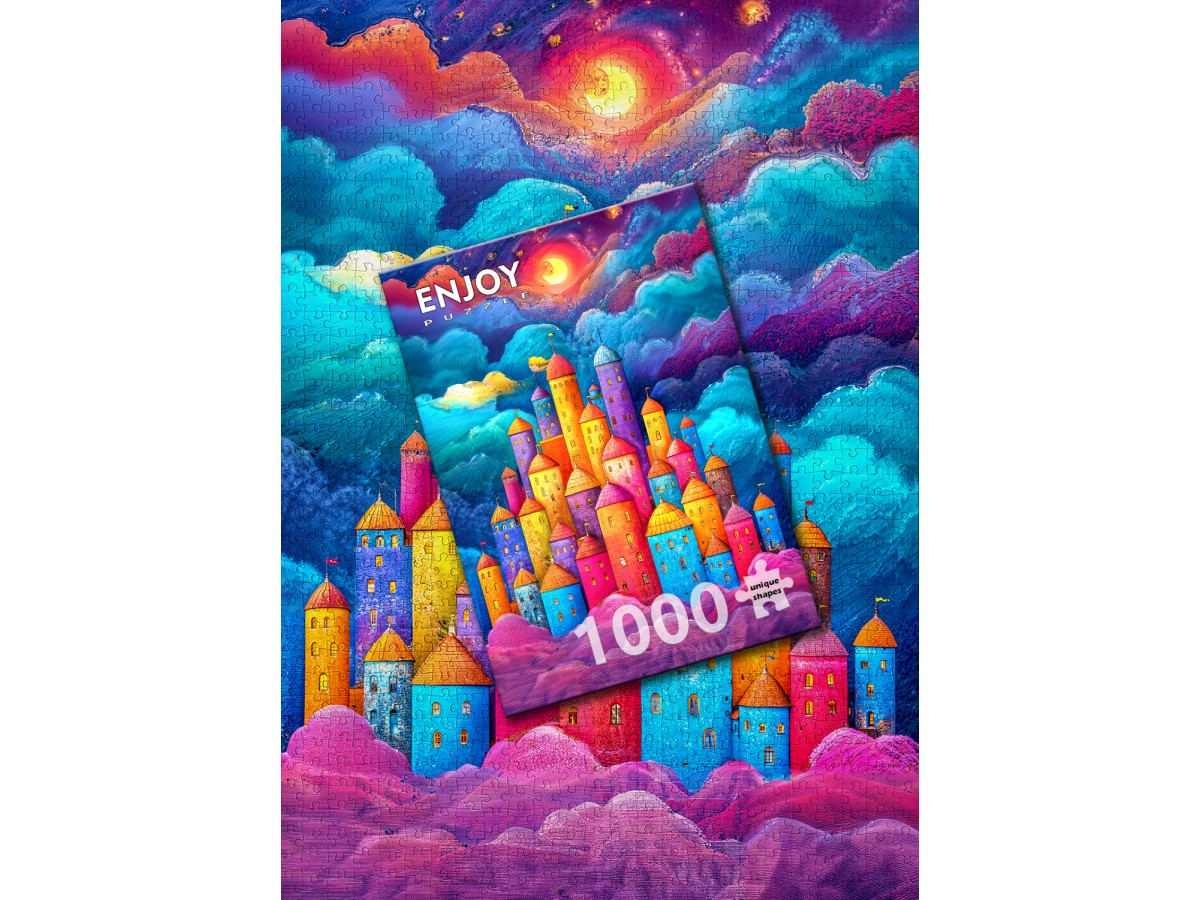 Patrunde intr-un taram de vis cu Puzzle 1000 piese Enjoy – Clouds Fortress! Imaginea spectaculoasa infatiseaza un castel fantastic asezat intre nori colorati si ceruri vibrante, o scena plina de magie si inspiratie. Fiecare piesa dezvaluie o parte dintr-un peisaj mistic, perfect pentru iubitorii de puzzle-uri artistice si fanteziste.