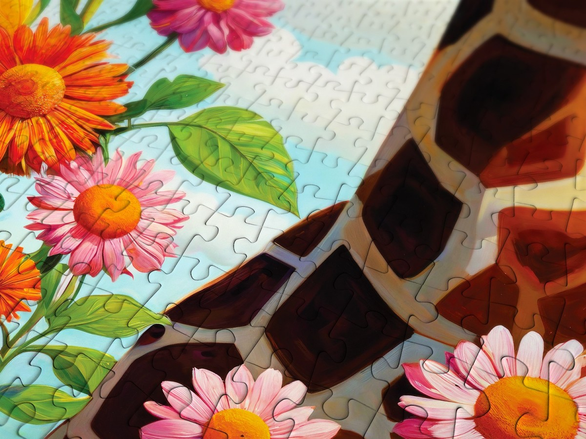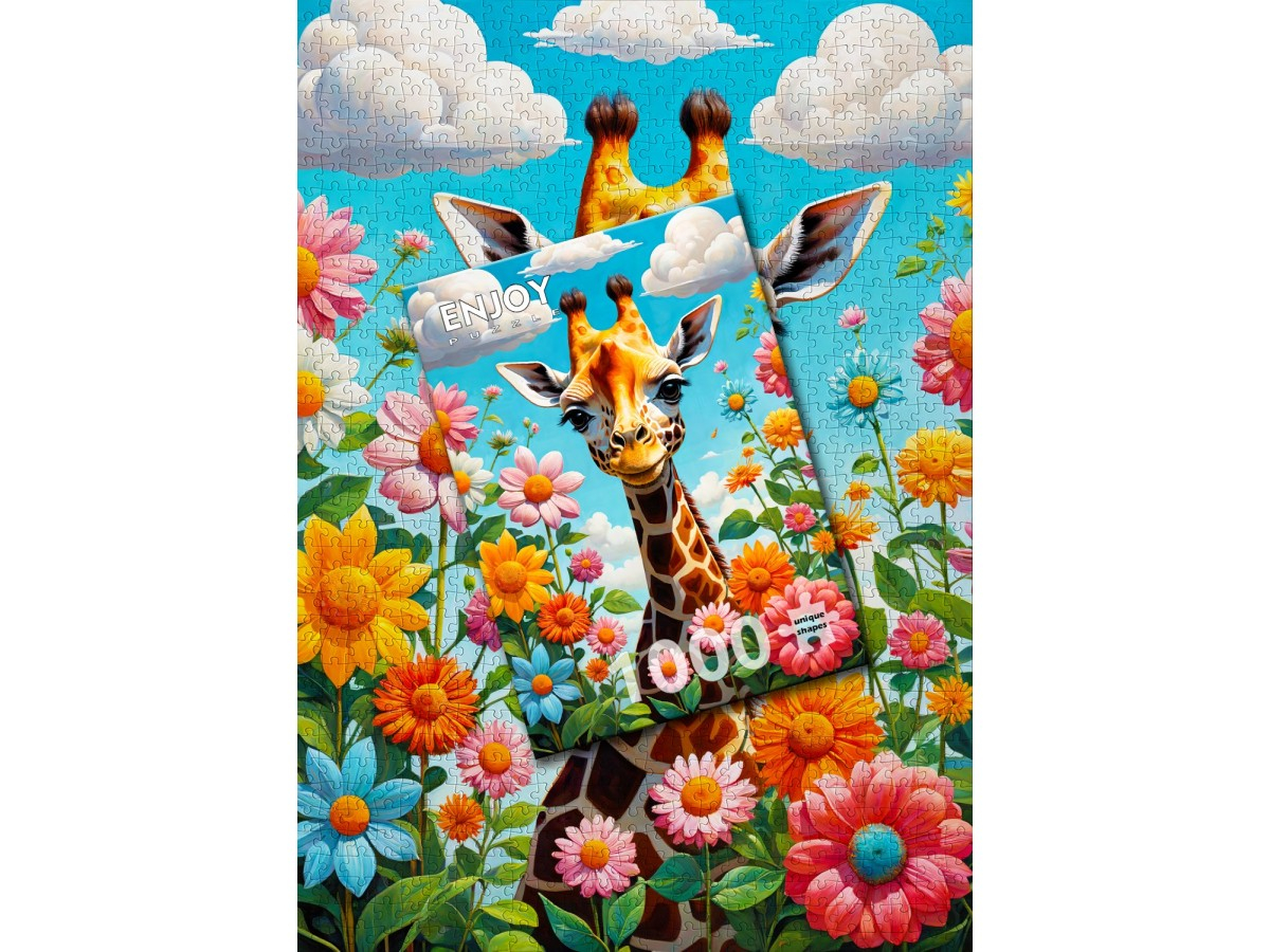 Adauga o nota vesela si colorata colectiei tale cu Puzzle 1000 piese Enjoy – Cute Giraffe, o ilustratie digitala plina de viata si optimism! 🦒🌸🧩