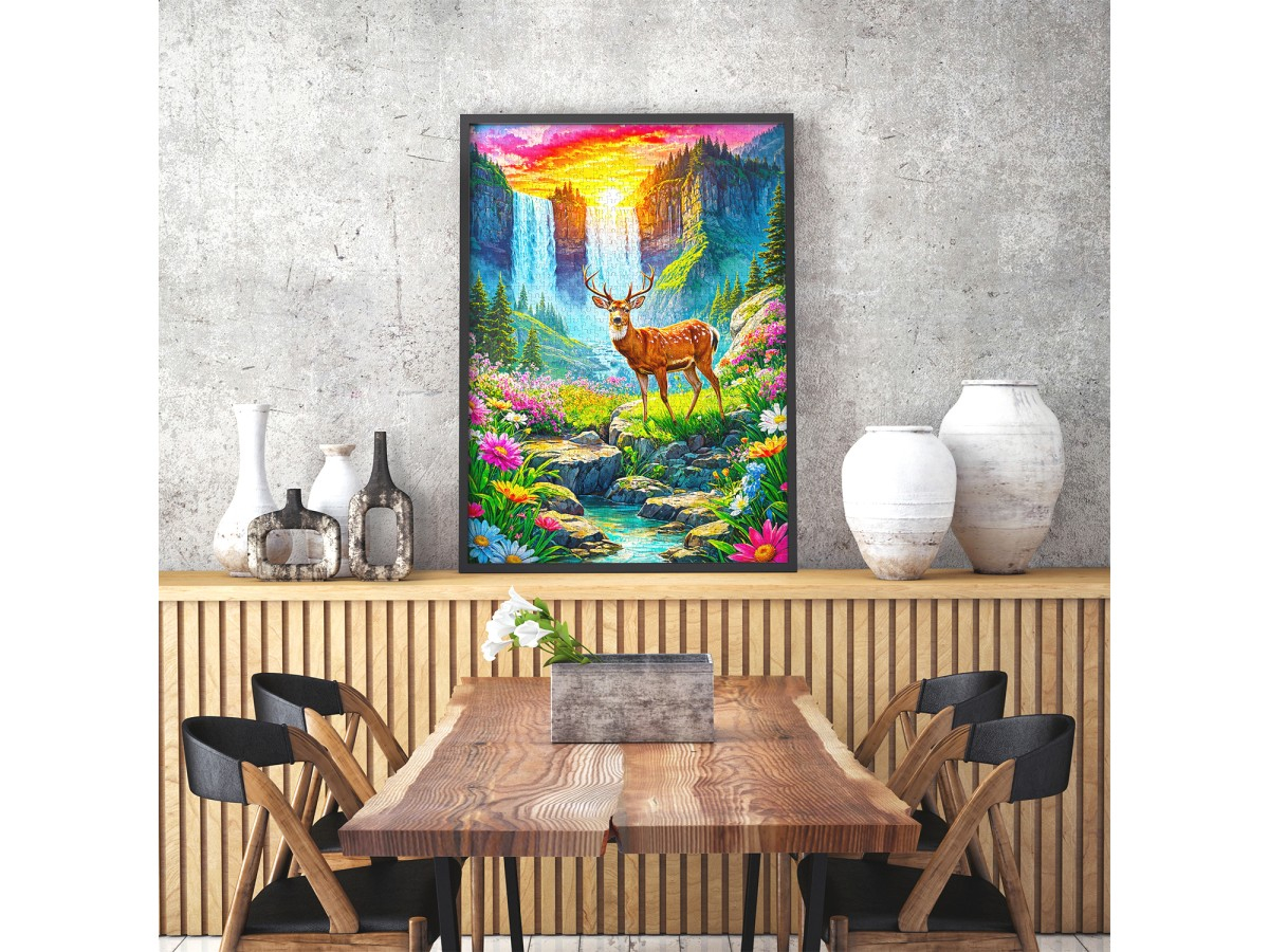 Puzzle-ul Deer Paradise ofera o experienta relaxanta si vizuala impresionanta, perfecta pentru momente de destindere si concentrare. Odata completata, imaginea devine o piesa de decor spectaculoasa, plina de energie si frumusete naturala.
