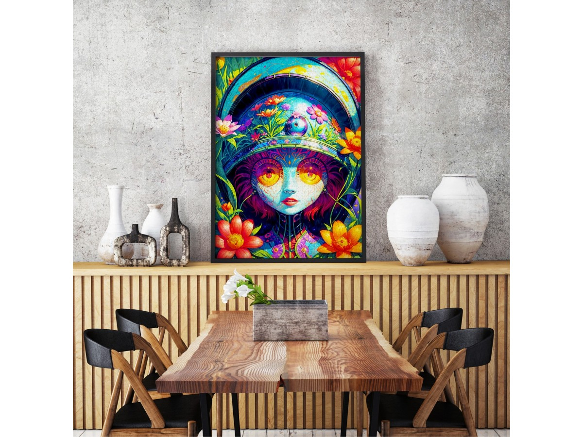 Descopera forta si frumusetea artei intr-o compozitie spectaculoasa cu puzzle-ul Enjoy – Floral Warrior, o ilustratie digitala vibranta care imbina elementele naturii cu misterul lumilor fantasy. Chipul unei femei cu privire patrunzatoare domina imaginea, impodobit cu modele florale colorate si o casca ornamentala inspirata din stilul Art Nouveau. Culorile intense – rosu, portocaliu, galben, albastru si verde – se combina intr-o armonie vizuala fascinanta, oferind o experienta de asamblare unica.