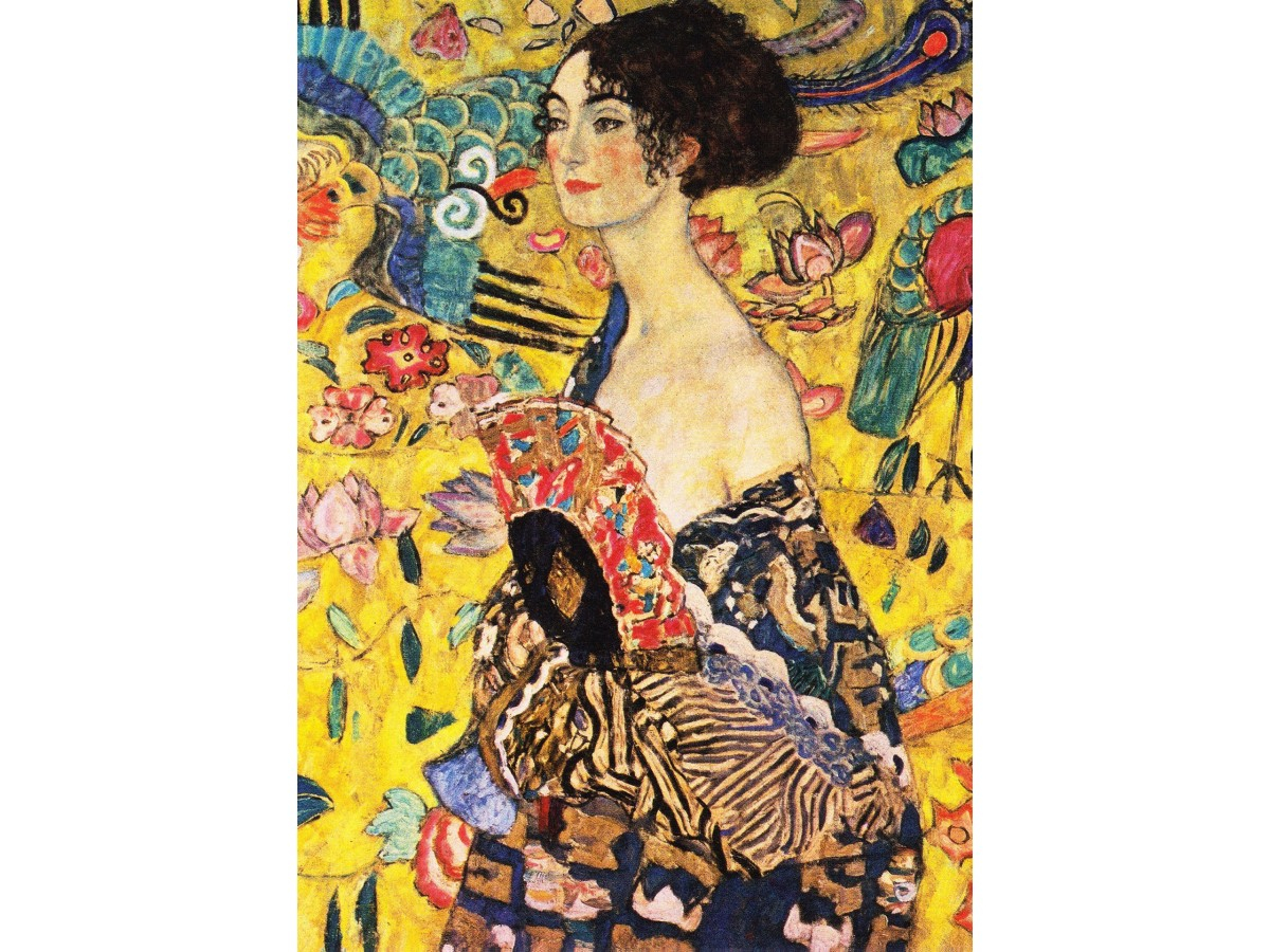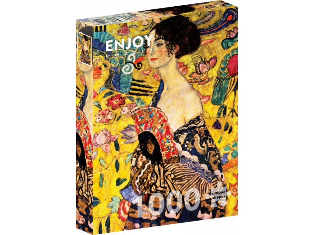 Puzzle 1000 piese Enjoy – Gustav Klimt: Lady with a Fan. O compozitie sofisticata si plina de detalii decorative, perfecta pentru iubitorii de arta art nouveau si puzzle-uri artistice 🎨🧩🌸