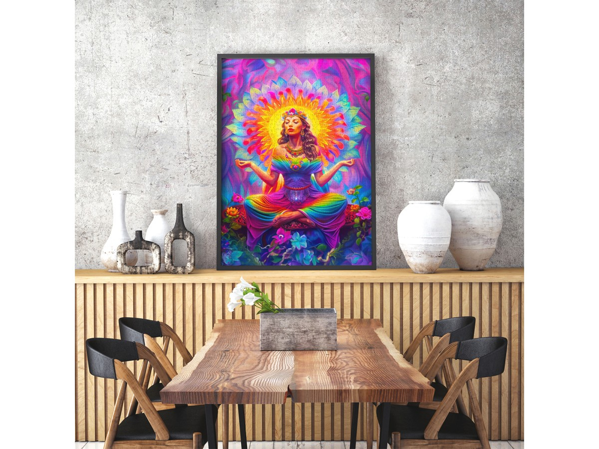 Patrunde intr-o lume a echilibrului si culorii cu Puzzle 1000 piese Enjoy – Harmony Spectrum! Aceasta ilustratie impresionanta imbina frumusetea spiritualitatii cu energia vibranta a spectrului cromatic. O femeie in postura meditativa este inconjurata de flori, lumina si culoare, creand o compozitie vizuala care inspira calm, concentrare si armonie interioara. Perfect pentru momentele de relaxare si mindfulness.