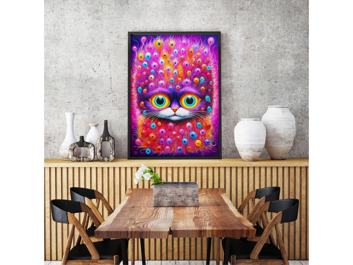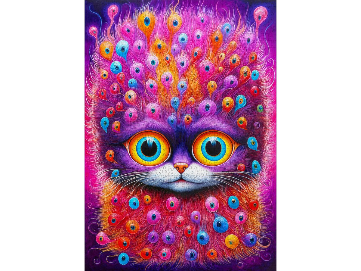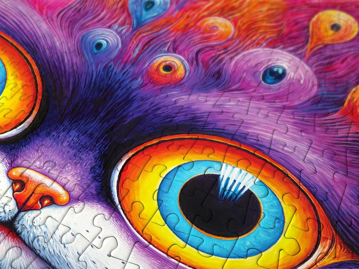 Descopera misterul si intensitatea privirii feline cu puzzle-ul Enjoy – I’m Watching You, o ilustratie digitala spectaculoasa ce infatiseaza o pisica stilizata, dominata de culori vibrante si detalii fascinante. Privirea galben-stralucitoare a pisicii contrasteaza puternic cu nuantele bogate de mov, roz si portocaliu care ii contureaza blana, creand o imagine plina de emotie si energie. Coroana formata din ochi colorati adauga o nota de simbolism si mister, evocand teme mitologice si fantastice. Acest puzzle captivant imbina arta digitala moderna cu provocarea intelectuala a asamblarii, oferind o experienta unica pentru adulti.