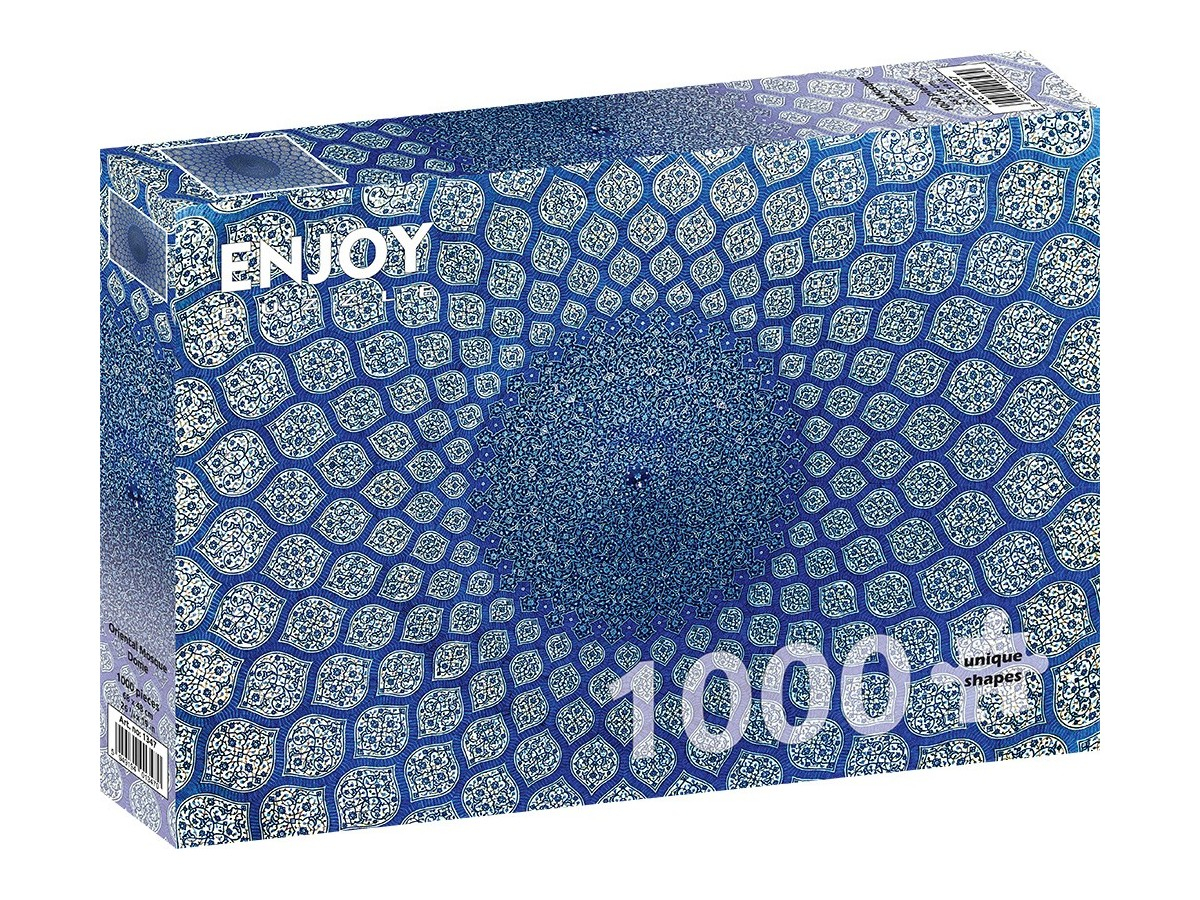 Descoperă frumusețea artei islamice 💠 Puzzle 1000 piese Enjoy – Oriental Mosque Dome, o simetrie perfectă în nuanțe de albastru.