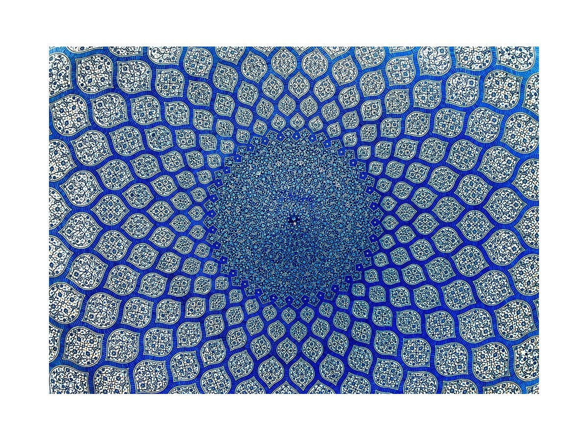 Modelele repetitive de hexagoane, cercuri și motive împletite redau esența esteticii orientale, transformând imaginea într-un spectacol de forme și armonie. Fiecare detaliu este redat cu precizie, iar structura simetrică a cupolei creează o senzație de spațiu tridimensional, accentuând frumusețea și misterul arhitecturii islamice.