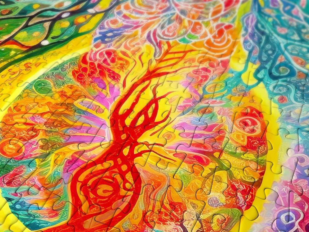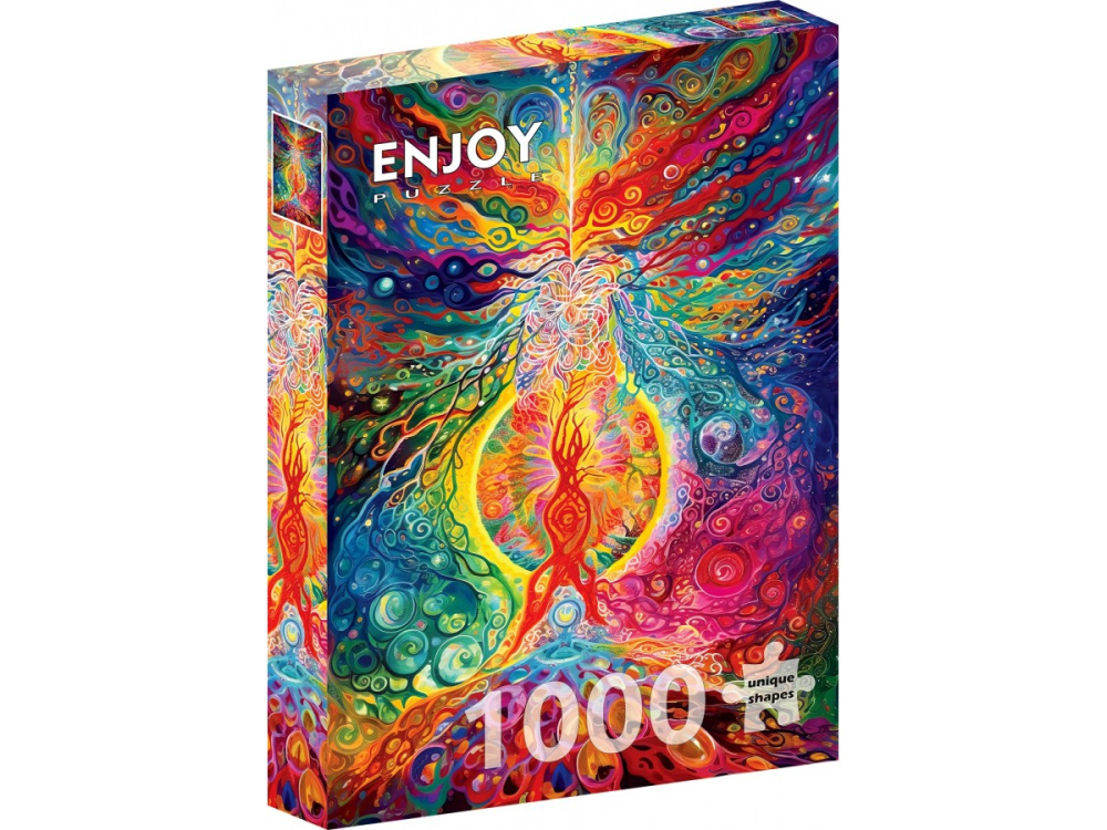 Descopera energia pura a culorilor cu puzzle-ul ENJOY – Rainbow Epicenter, o ilustratie digitala uimitoare ce te poarta intr-un univers abstract plin de miscare si emotie. In centrul compozitiei, doua siluete umanoide par sa danseze sau sa se uneasca intr-un nucleu radiant, din care izbucneste o explozie vibranta de forme, lumini si nuante. Fiecare detaliu pulseaza cu viata, creand o experienta vizuala hipnotizanta si dinamica.