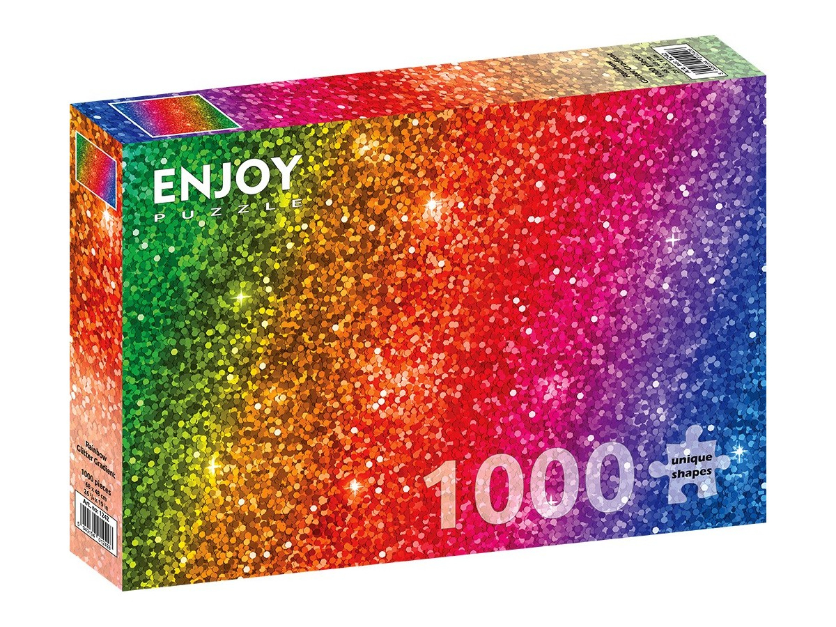 Puzzle 1000 piese Enjoy – Rainbow Glitter Gradient. Un curcubeu stralucitor de culori intense, perfect pentru relaxare, concentrare si iubitorii de design modern 🎨✨🌈🧩