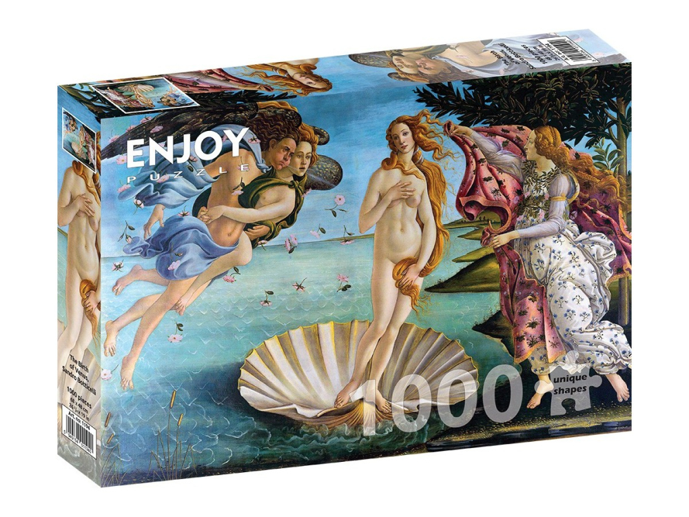 Puzzle 1000 piese Enjoy – Sandro Botticelli: The Birth of Venus. O capodopera a Renasterii italiene, plina de eleganta si simbolism, perfecta pentru iubitorii de arta clasica si puzzle-uri artistice 🌊🎨🧩