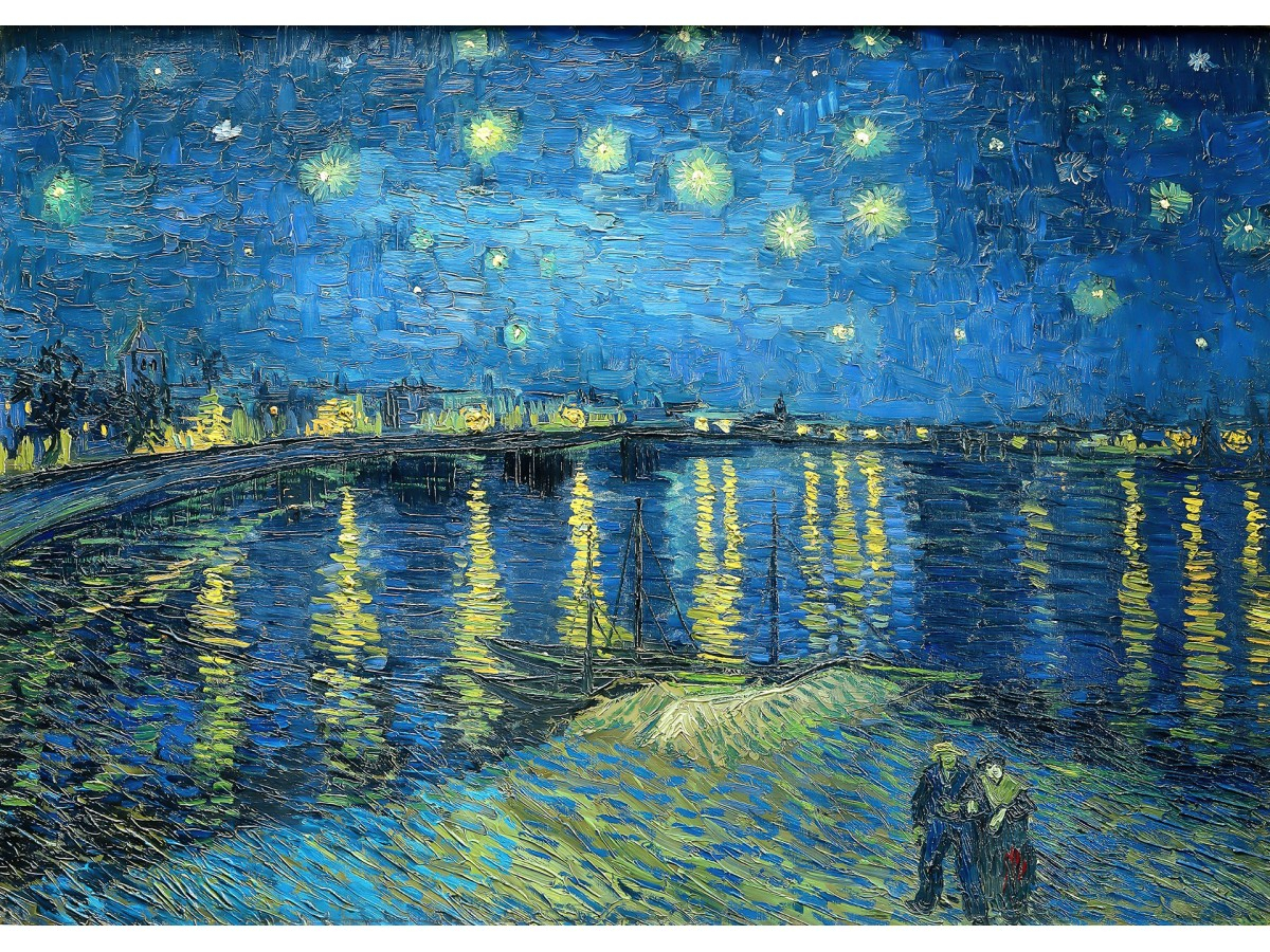 Puzzle 1000 piese Enjoy – Vincent van Gogh: Starry Night Over the Rhone. O scena nocturna plina de lumina si emotie, perfecta pentru iubitorii de arta postimpresionista si puzzle-uri contemplative 🌌🎨🧩
