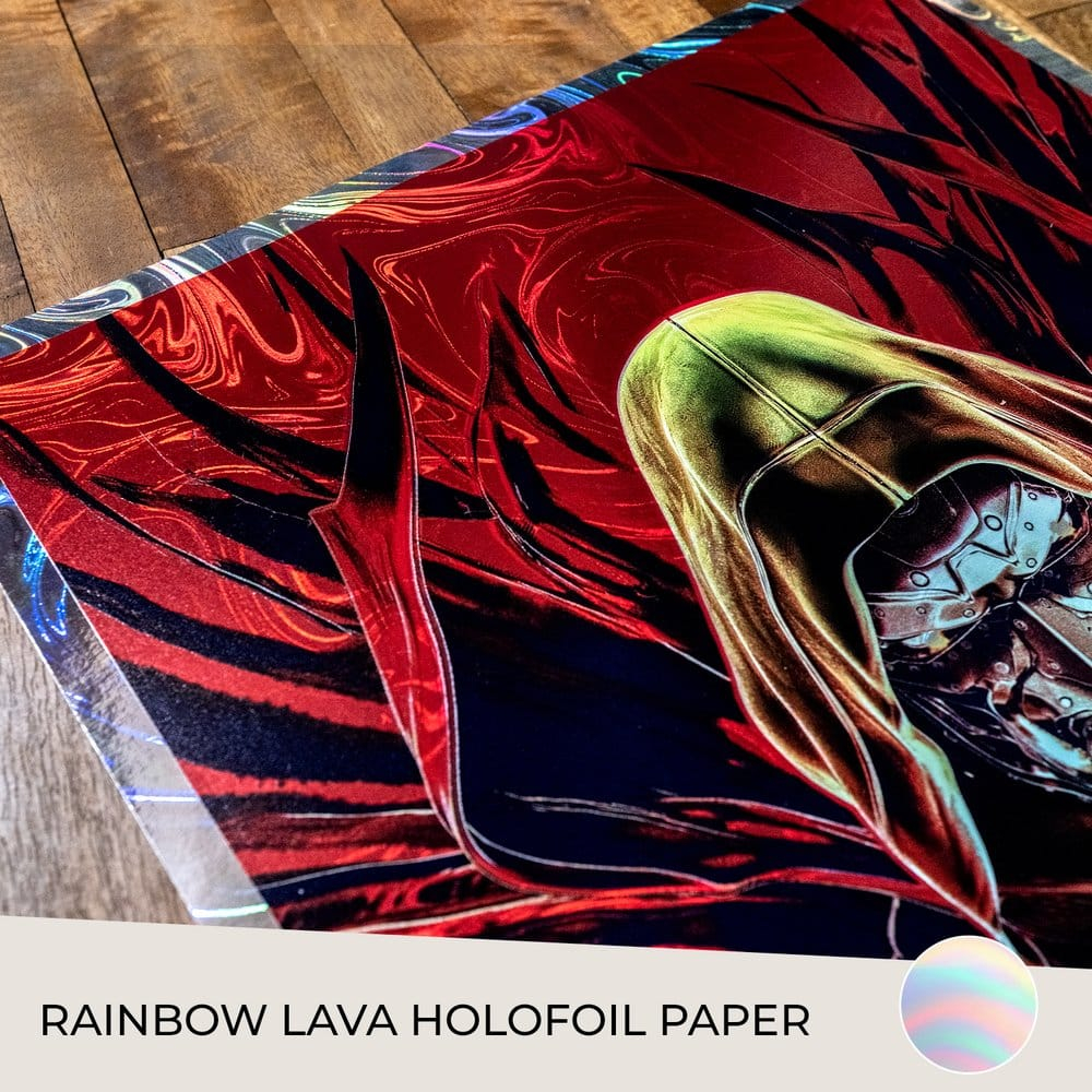 Originally created as a variant cover for One World Under Doom #1 (2025), written by Ryan North for Marvel Comics, this Doctor Doom art is printed on rainbow lava holofoil paper and available to fans as an unframed print or in a contemporary framed presentation. Each One World Under Doom Fine Art Print features an embossed Sideshow Seal of Authenticity as part of the limited edition of 150 pieces.